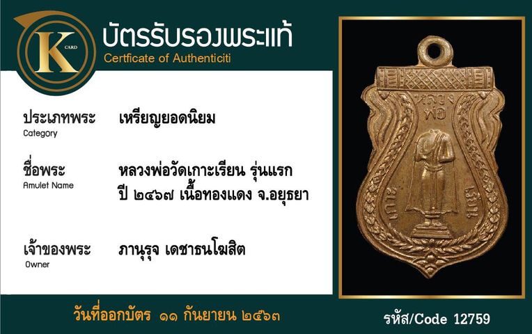 เหรียญหลวงพ่อวัดเกาะเรียน