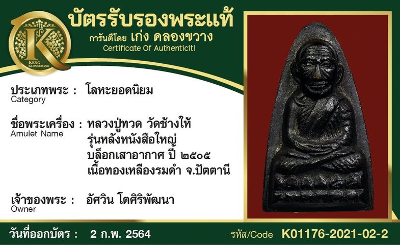 หลวงปู่ทวด วัดช้างให้ รุ่นหลังหนังสือใหญ่ บล็อกหลังเสาอากาศ