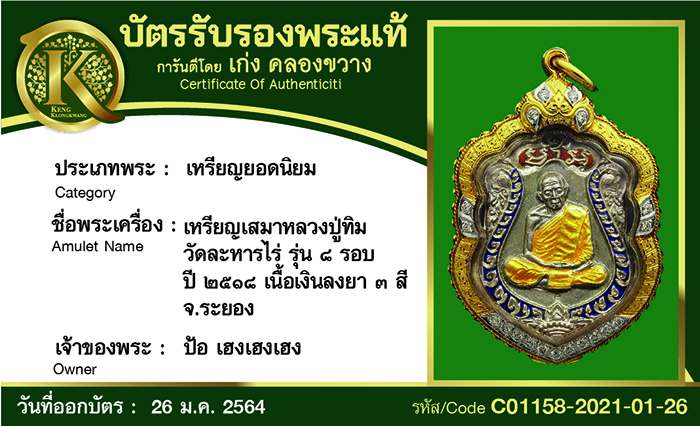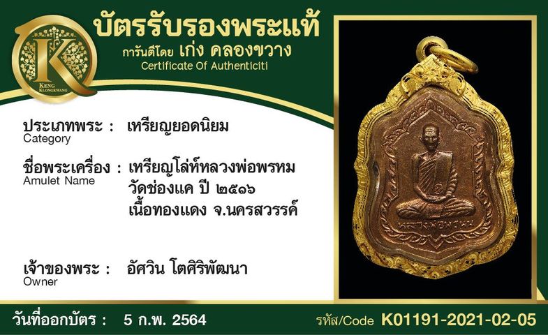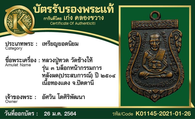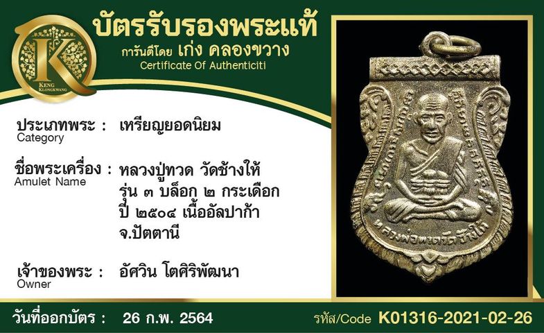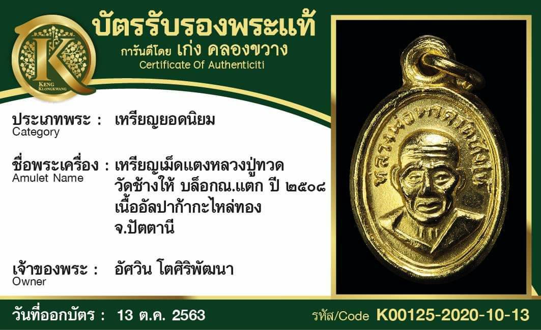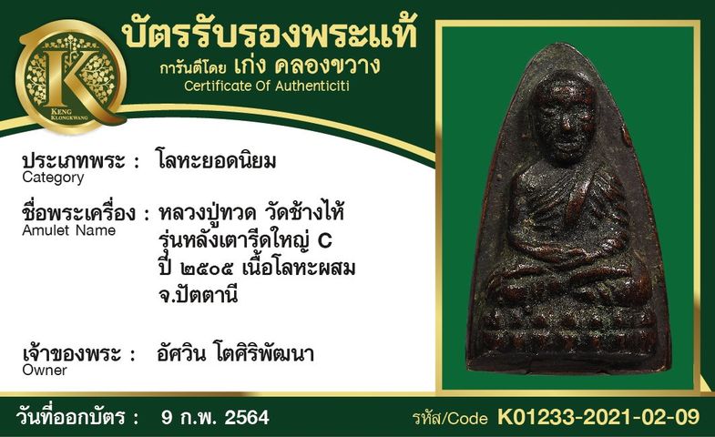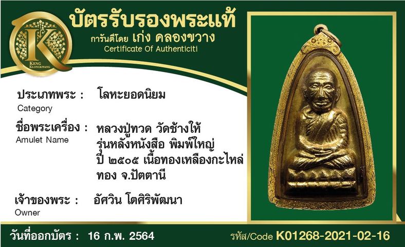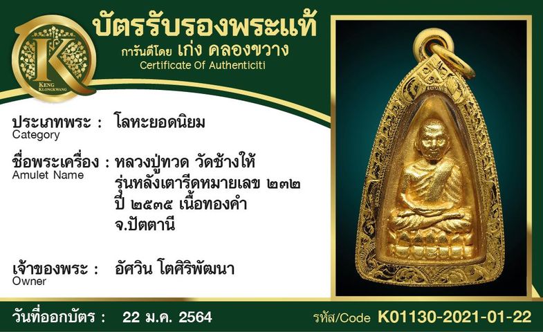 หลวงปู่ทวด วัดช้างให้ ปี 2535 เนื้อทองคำ
