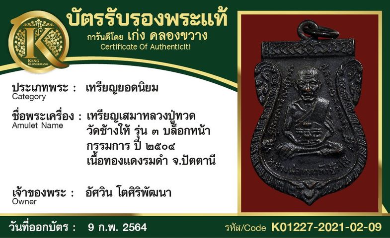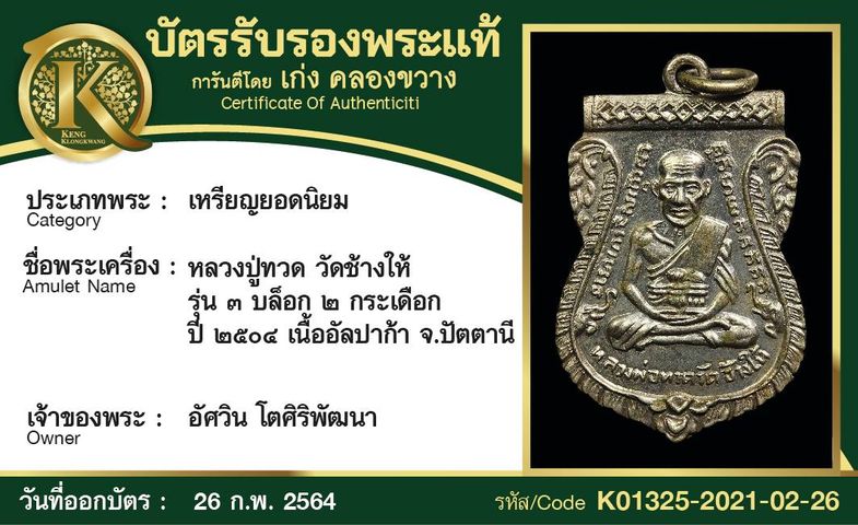 เหรียญหลวงปู่ทวด วัดช้างให้ รุ่น 3 บล็อก 2 กระเดือก ปี 2504 เนื้ออัลปาก้า จังหวัดปัตตานี