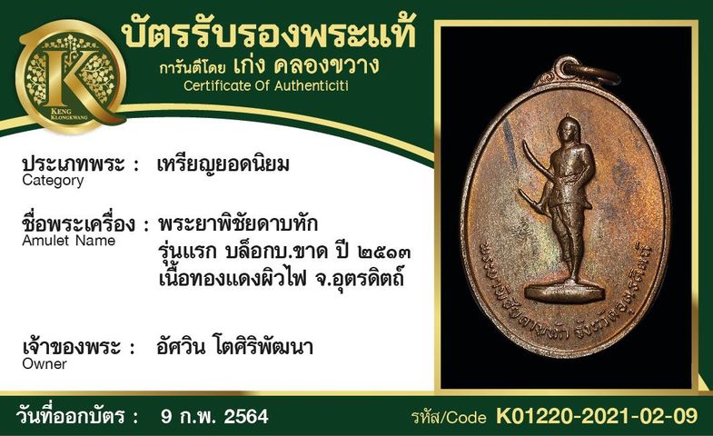 เหรียญพระยาพิชัยดาบหัก รุ่นแรก บล็อก บ.ขาด ปี 2513