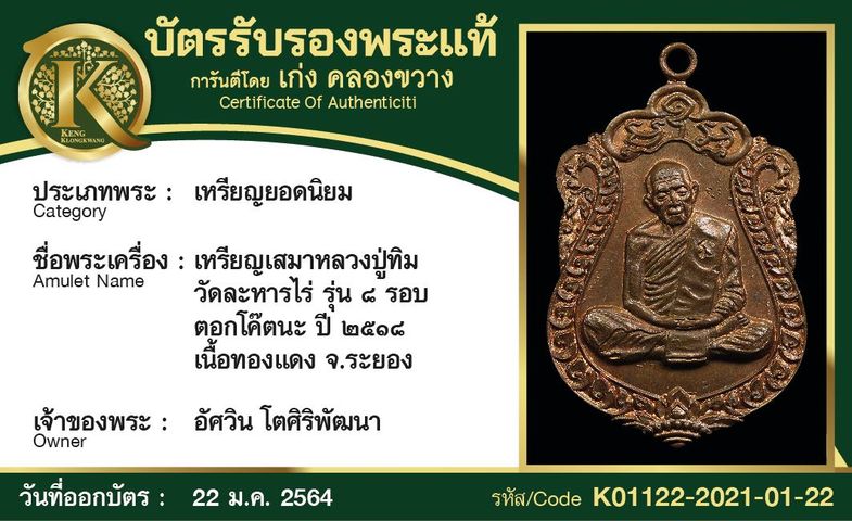 เหรียญเสมา หลวงปู่ทิม วัดระหารไร่ รุ่น 8 รอบ โค๊ตนะ ปี 2518