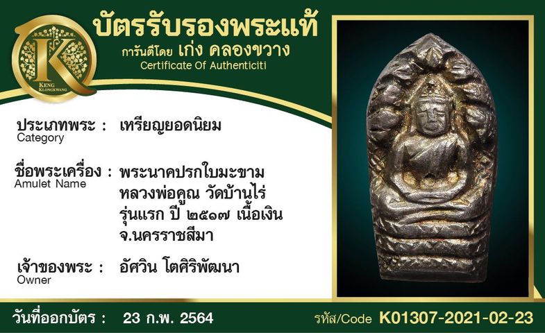เหรียญพระนาคปรกหลวงพ่อคูณ วัดบ้านไร่ รุ่นแรก ปี 2517 เนื้อเงิน จังหวัดนครราชสีมา
