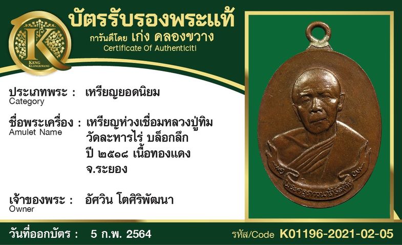 เหรียญห่วงเชื่อมหลวงปู่ทิม วัดละหารไร่ บล็อกแดง จังหวัดทองแดง