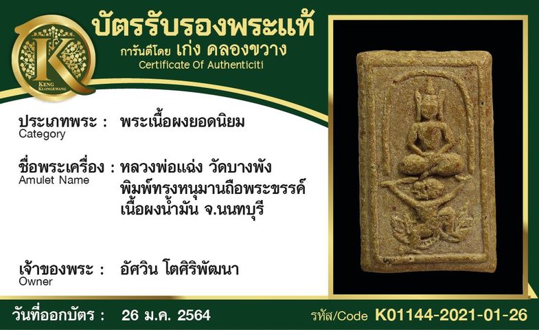 หลวงพ่อแฉ่ง วัดบางพัง พิมพ์ทรงหนุมานถือพระขรรค์