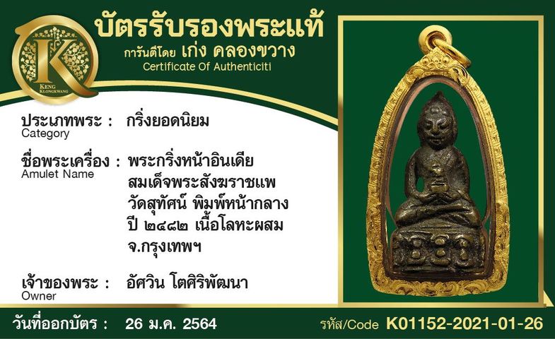 พระกริ่งหน้าอินเดีย สมเด็จพระสังฆราชแพ วัดสุทัศน์