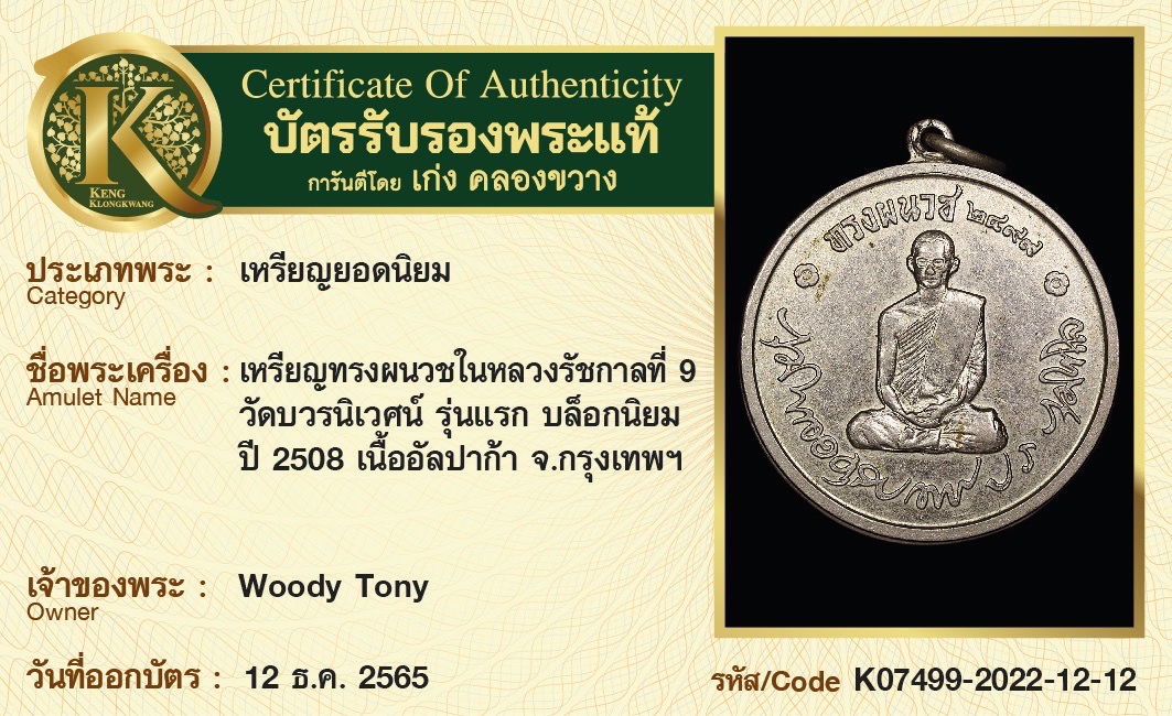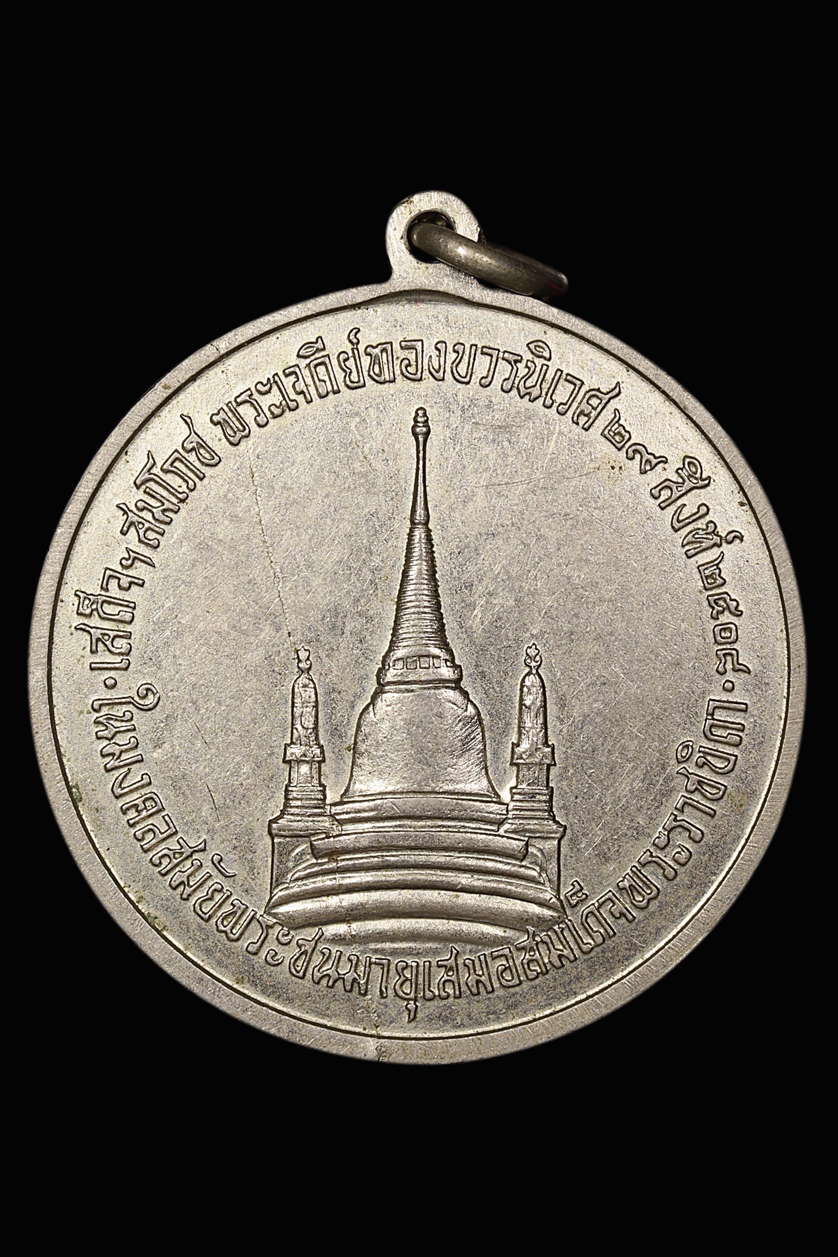เหรียญทรงผนวชในหลวงรัชกาลที่ 9 วัดบวรนิเวศน์ บล็อกนิยมเจดีย์เต็ม ปี 2508 เนื้ออัลป้าก้า จ.กรุงเทพฯ
