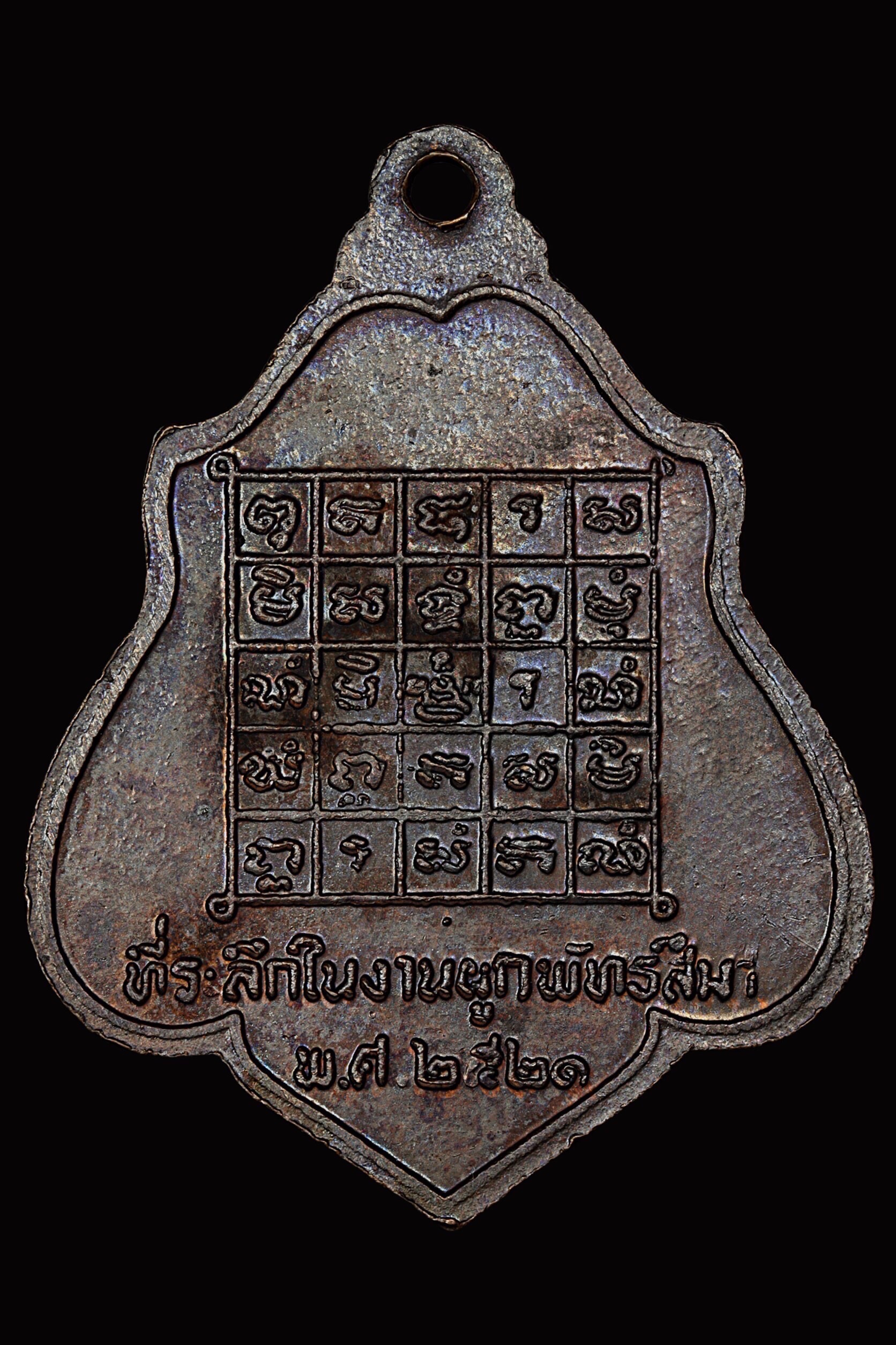 เหรียญหลวงพ่อกวย วัดโฆสิตาราม รุ่นผูกพัทธสีมา บล็อกหลังยันต์ตาราง ปี 2521 เนื้อทองแดงรมดำ จังหวัดชัยนาท