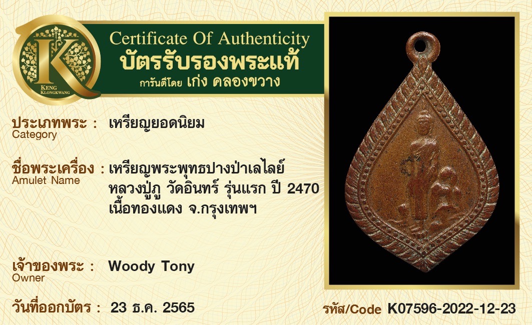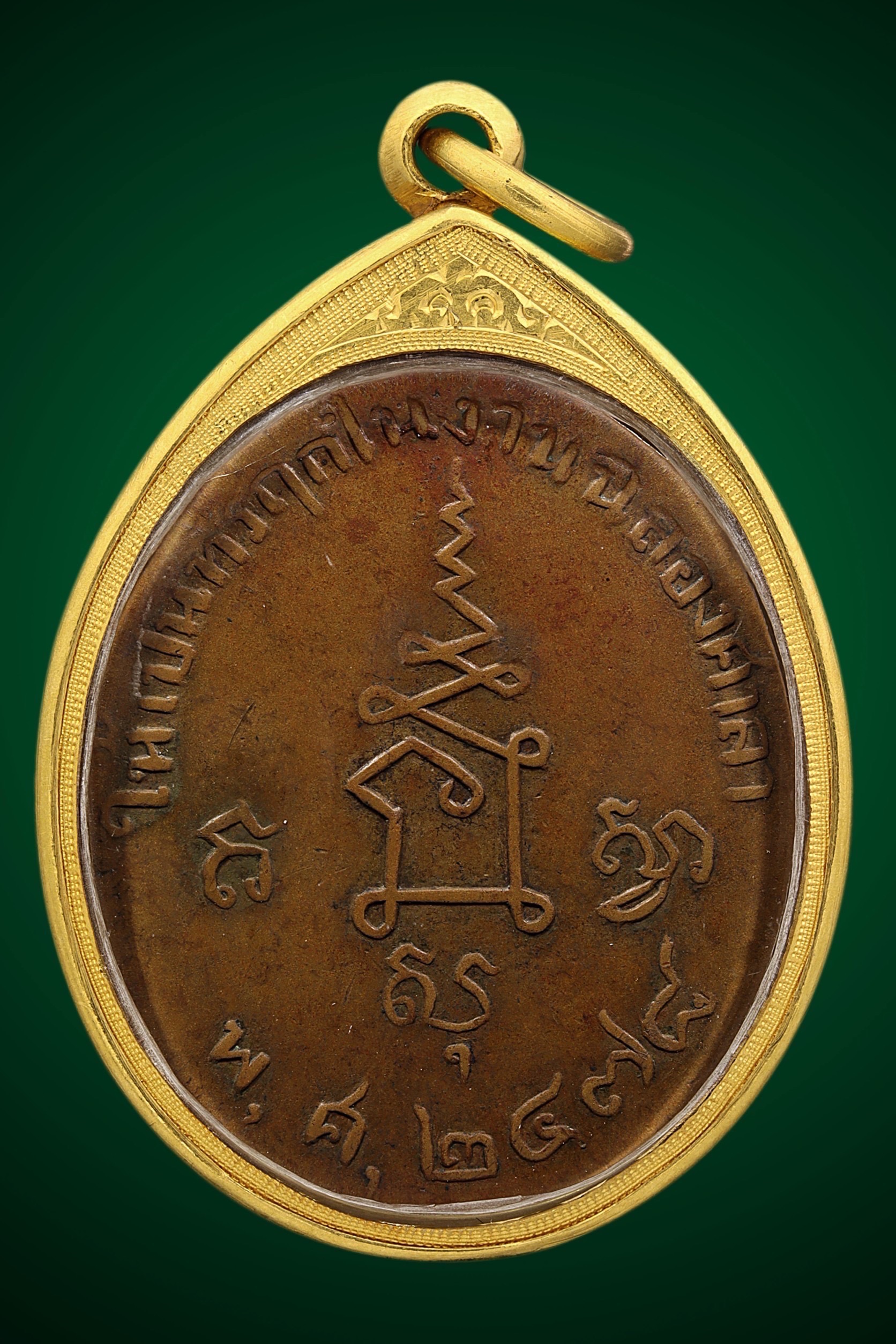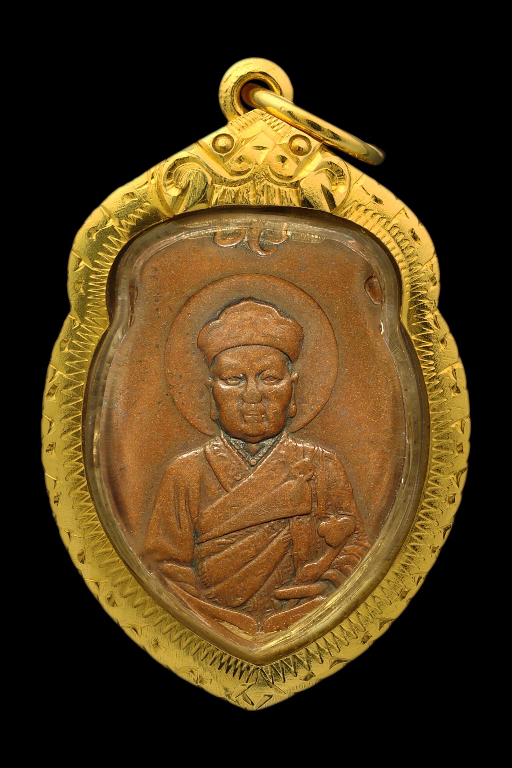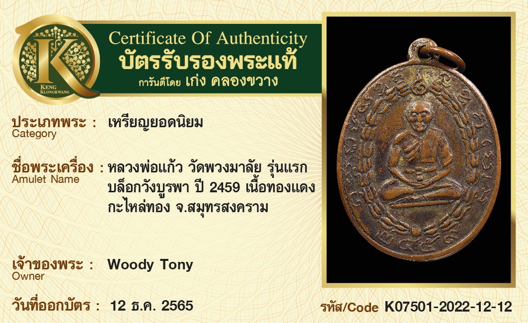 เหรียญหลวงพ่อแก้ว วัดพวงมาลัย รุ่นแรก บล็อกวังบูรพา ปี 2459 เนื้อทองแดงกะไหล่ทอง จ.สมุทรสงคราม
