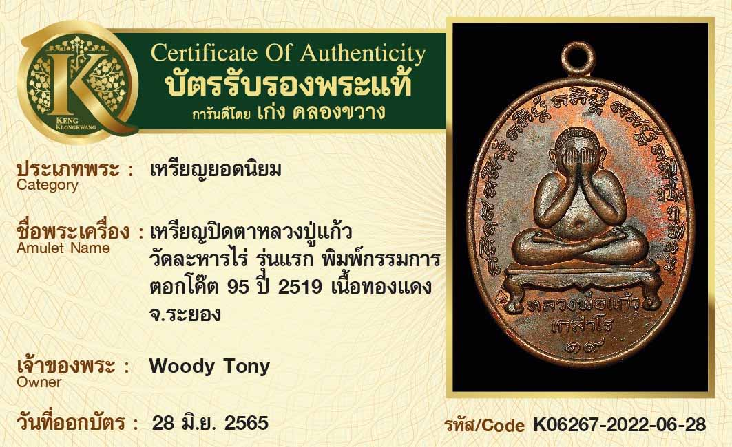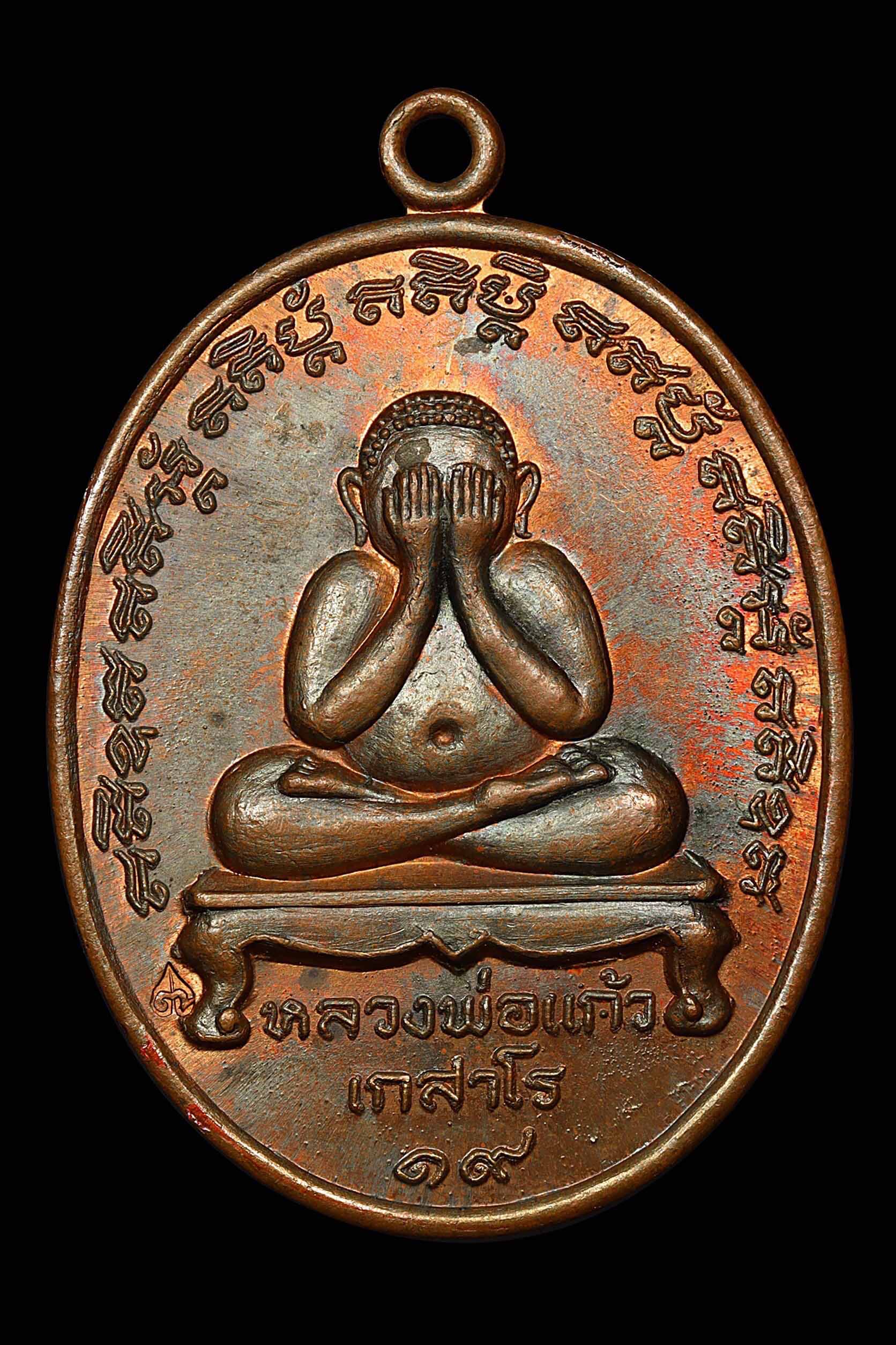 เหรียญปิดตาหลวงปู่แก้ว วัดละหารไร่ รุ่นแรก ปี 2519 เนื้อทองแดง จ.ระยอง