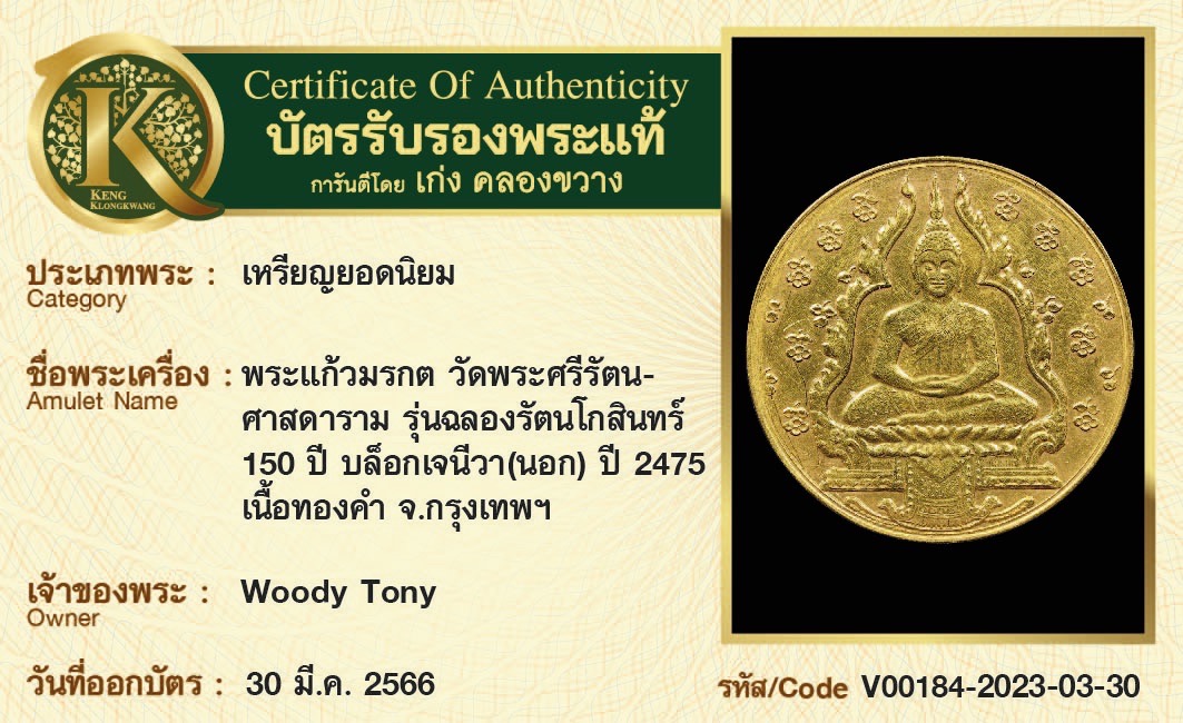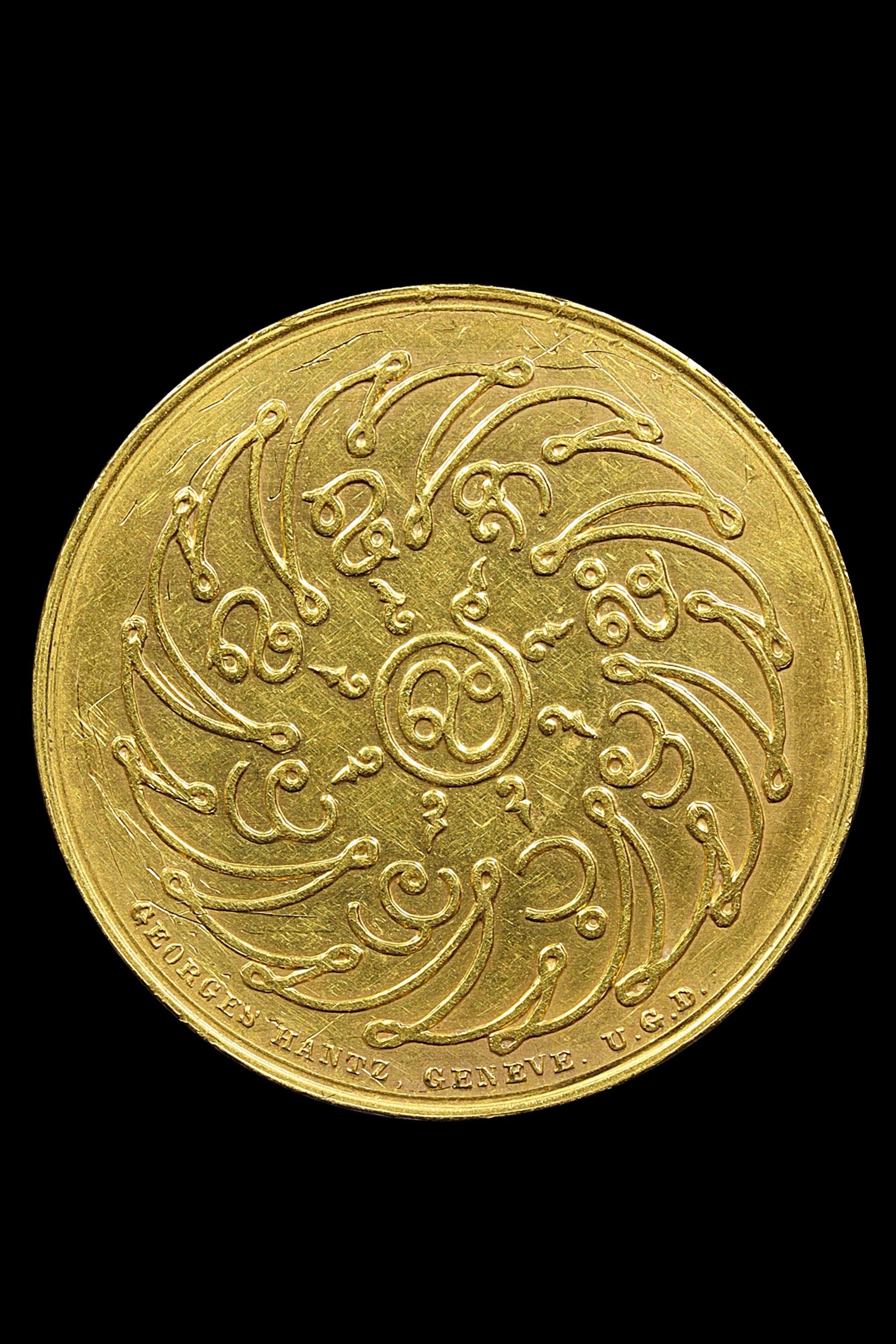 เหรียญพระแก้วมรกต วัดพระศรีรัตนศาสดาราม รุ่นฉลองรัตนโกสินทร์ 150 ปี บล็อกเจนีวา (นอก) ปี 2475 เนื้อทองคำ จ.กรุงเทพฯ