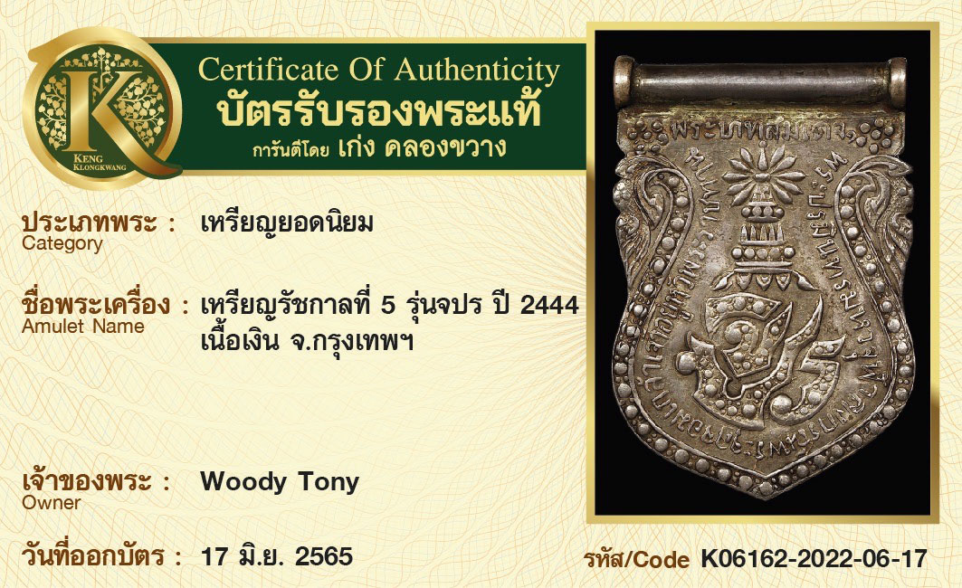 เหรียญรัชกาลที่ 5 รุ่น จ.ป.ร. ปี 2544 เนื้อเงิน จังหวัดกรุงเทพฯ