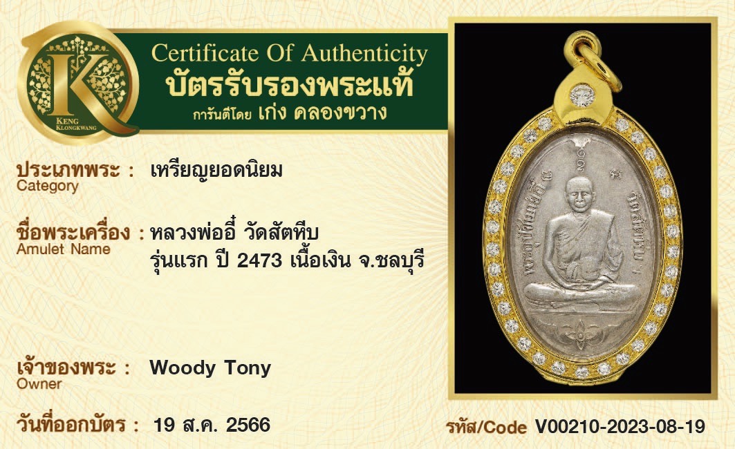 เหรียญหลวงพ่ออี๋ วัดสัตหีบ รุ่นแรก ปี 2473 เนื้อเงิน จ.ชลบุรี