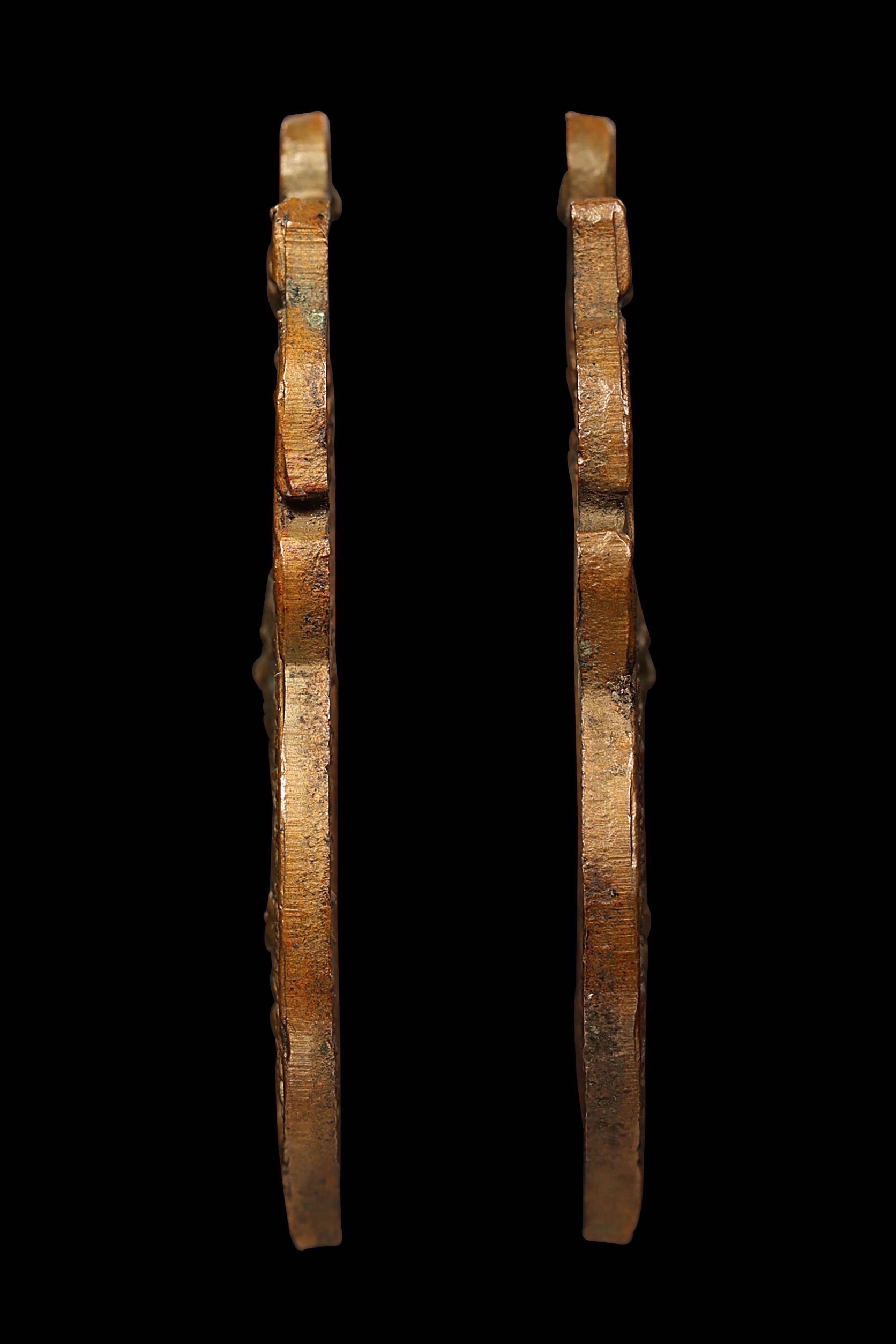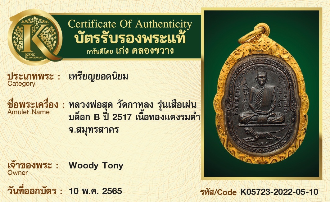 เหรียญหลวงพ่อสุด วัดกาหลง รุ่นเสือเผ่น บล็อก B ปี 2517 เนื้อทองแดงรมดำ จ.สมุทรสาคร
