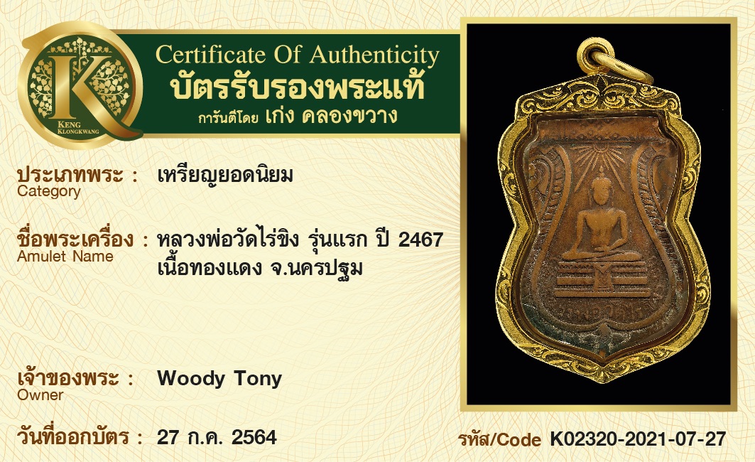 เหรียญหลวงพ่อวัดไร่ขิง รุ่นแรก ปี 2467 เนื้อทองแดง จังหวัดนครปฐม