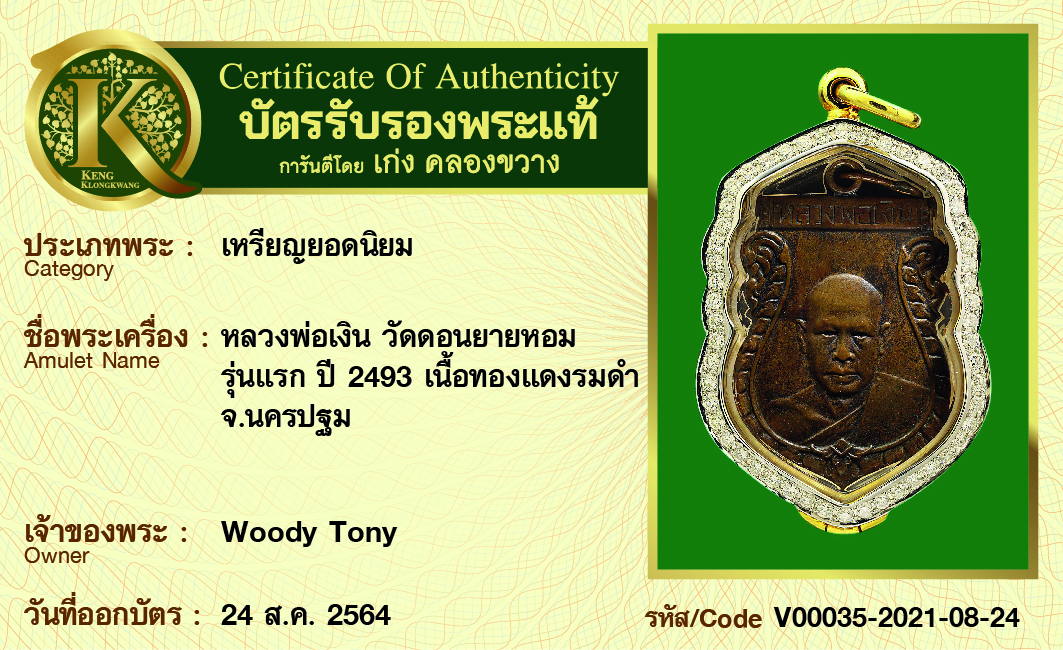 เหรียญหลวงพ่อเงิน วัดดอนยายหอม รุ่นแรก ปี 2493 เนื้อทองแดงรมดำ จังหวัดนครปฐม