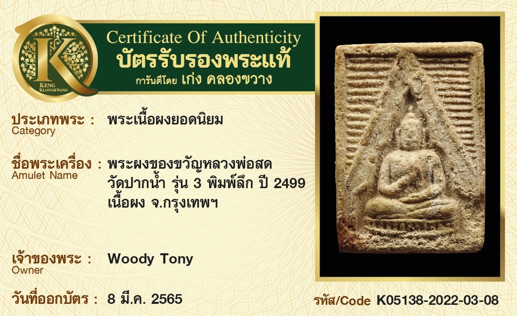 พระผงของขวัญหลวงพ่อสด วัดปากน้ำ รุ่น 3 พิมพ์ลึก ปี 2499 เนื้อผง จังหวัดกรุงเทพฯ