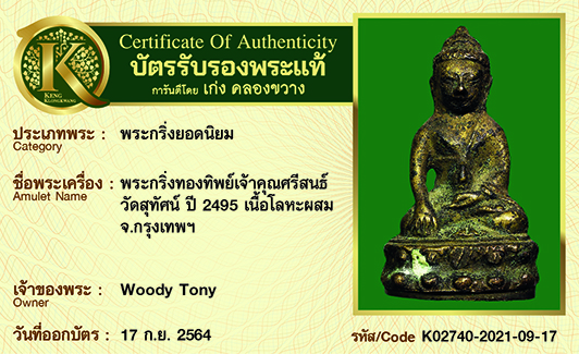 พระกริ่งทองทิพย์เจ้าคุณศรีสนธ์ วัดสุทัศน์ ปี2495 เนื้อโลหะผสม จังหวัดกรุงเทพฯ