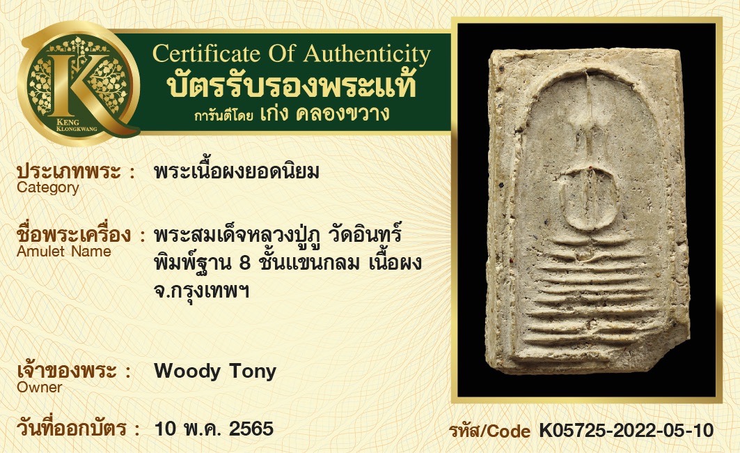 พระสมเด็จหลวงปู่ภู วัดอินทร์ พิมพ์ฐาน 8 ชั้น แขนกลม เนื้อผง จังหวัดกรุงเทพฯ