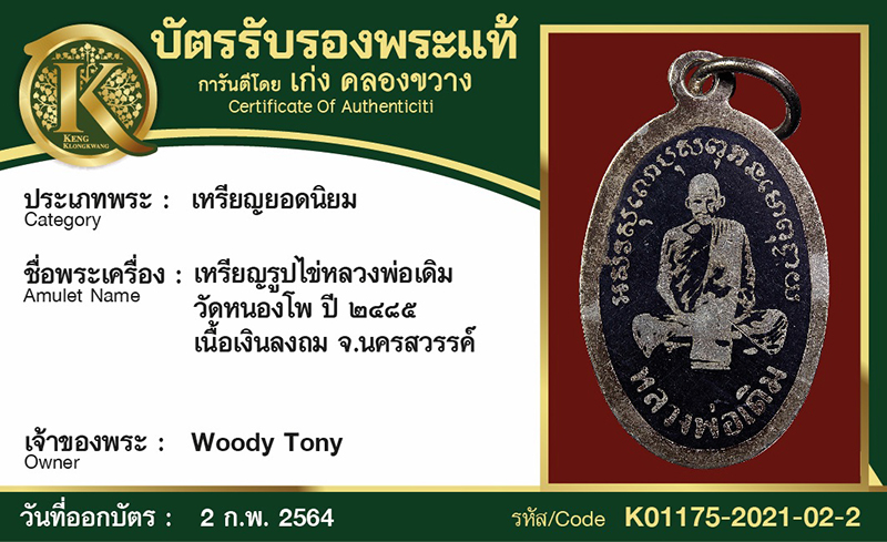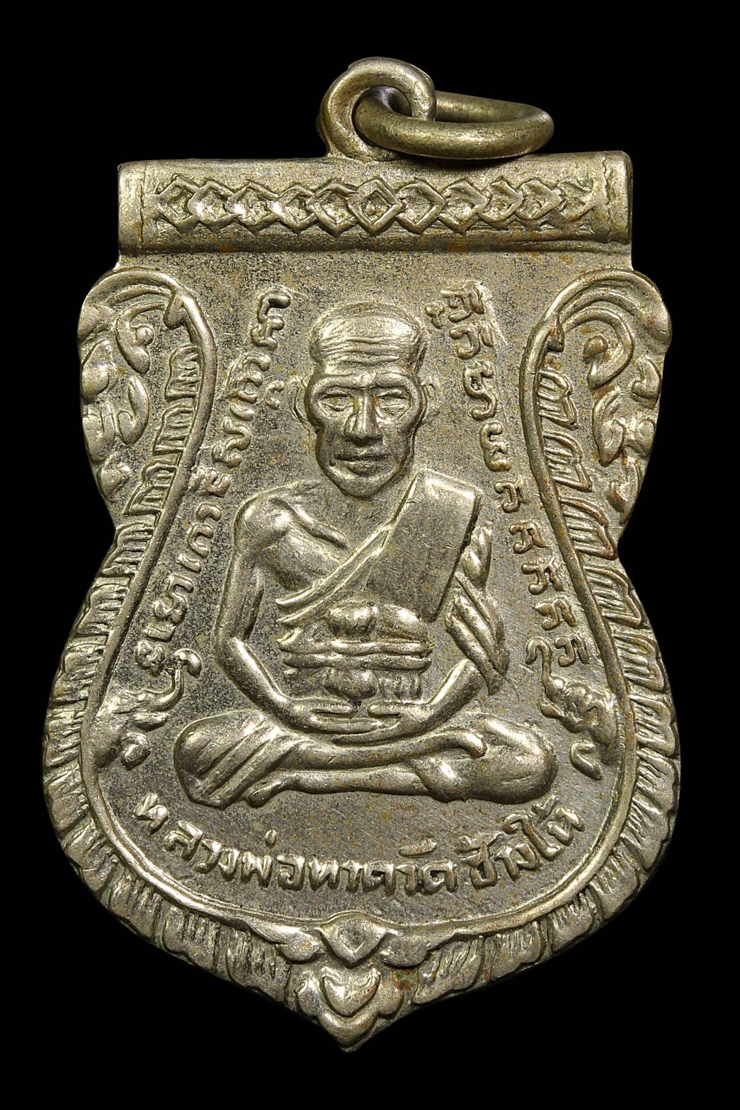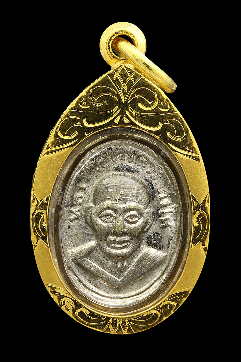 เหรียญรูปไข่หลวงพ่อเดิม วัดหนองโพ เนื้อเงินลงถม