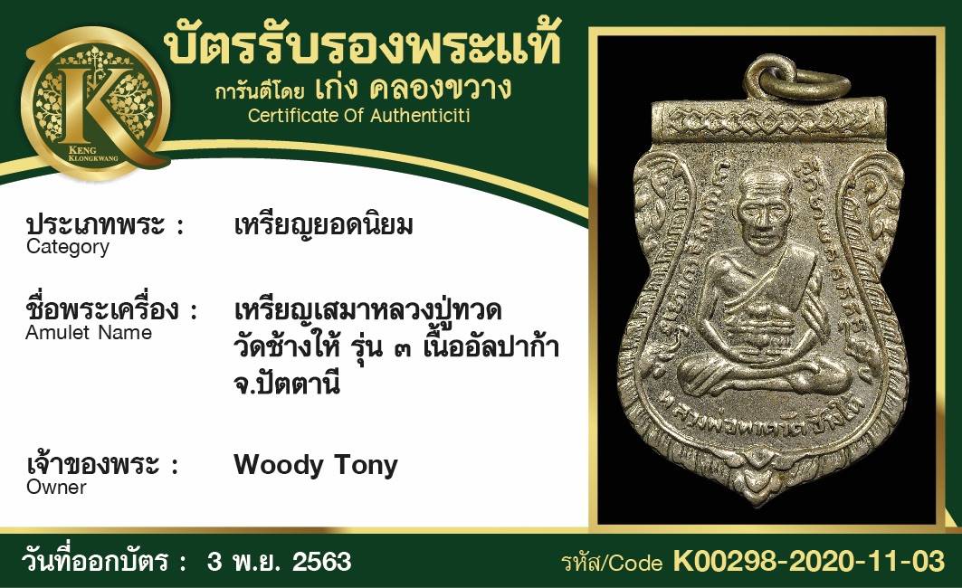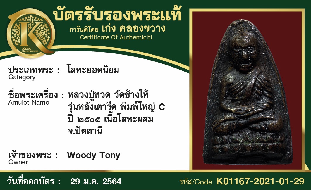 หลวงปู่ทวด วัดช้างให้ รุ่นหลังเตารีด พิมพ์ใหญ่ C