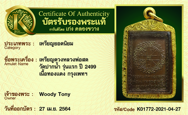 เหรียญหลวงพ่อทอง วัดเขากบ รุ่นแรก ปี 2480 เนื้อทองแดง จ.นครสวรรค์