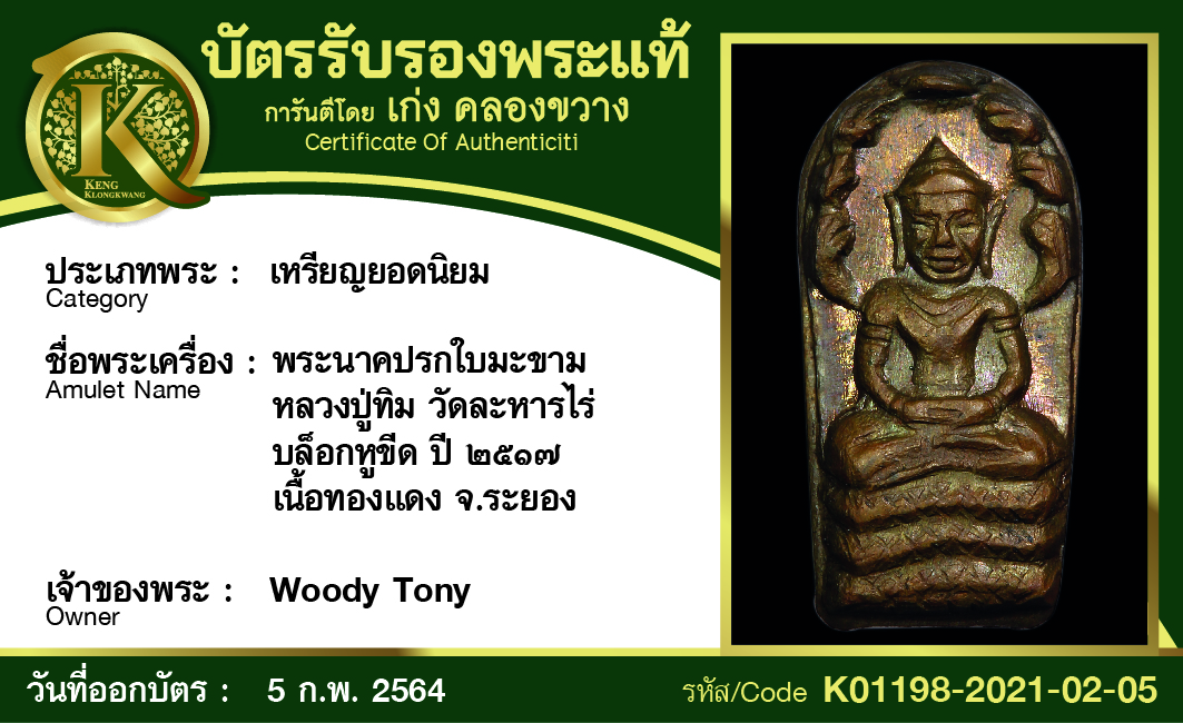 พระนาคปรกใบมะขาม หลวงปู่ทิม วัดละหารไร่ บล็อกหูขีด