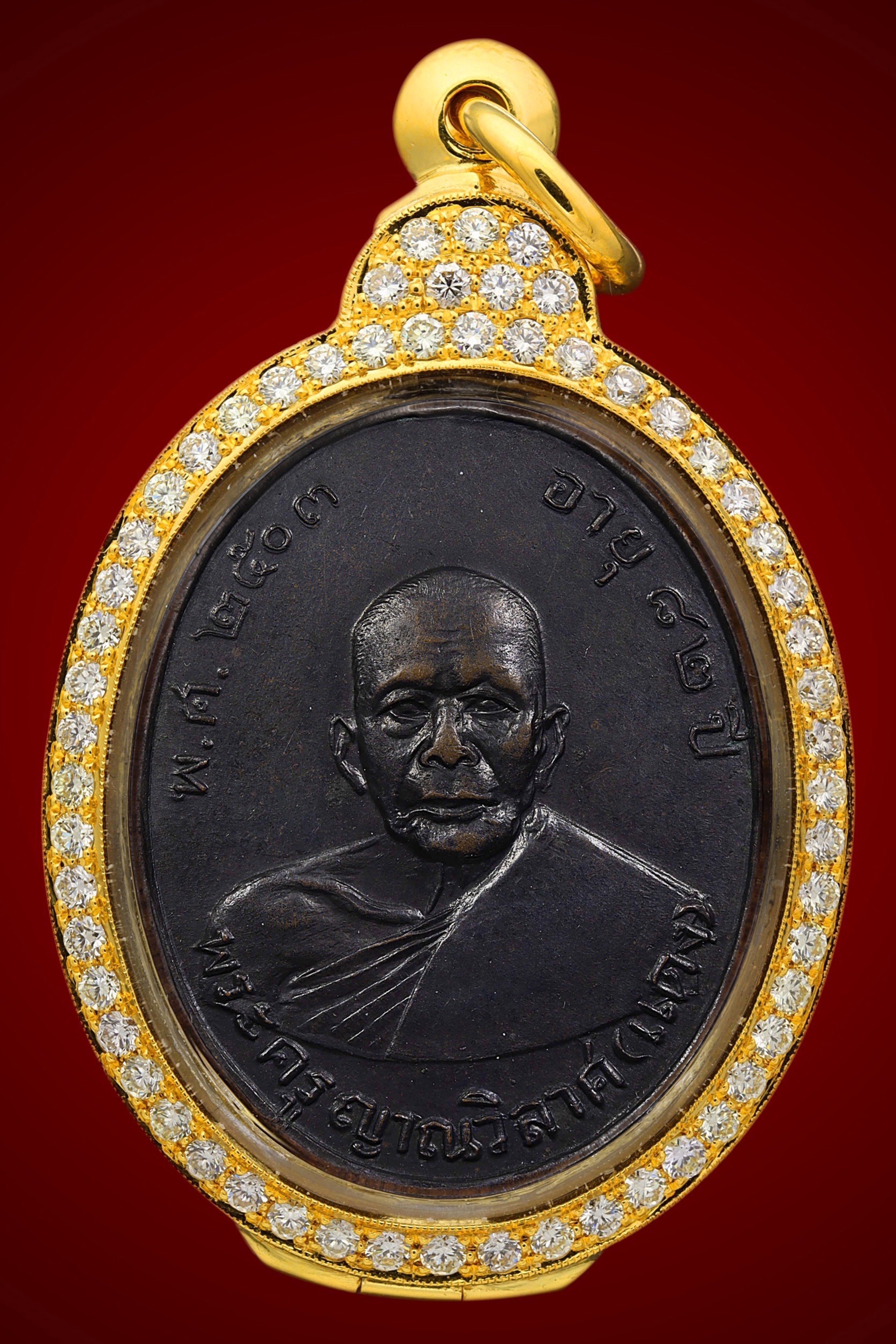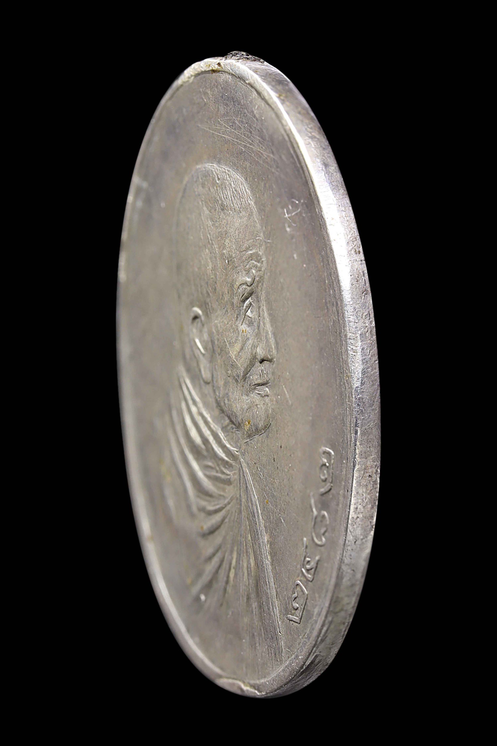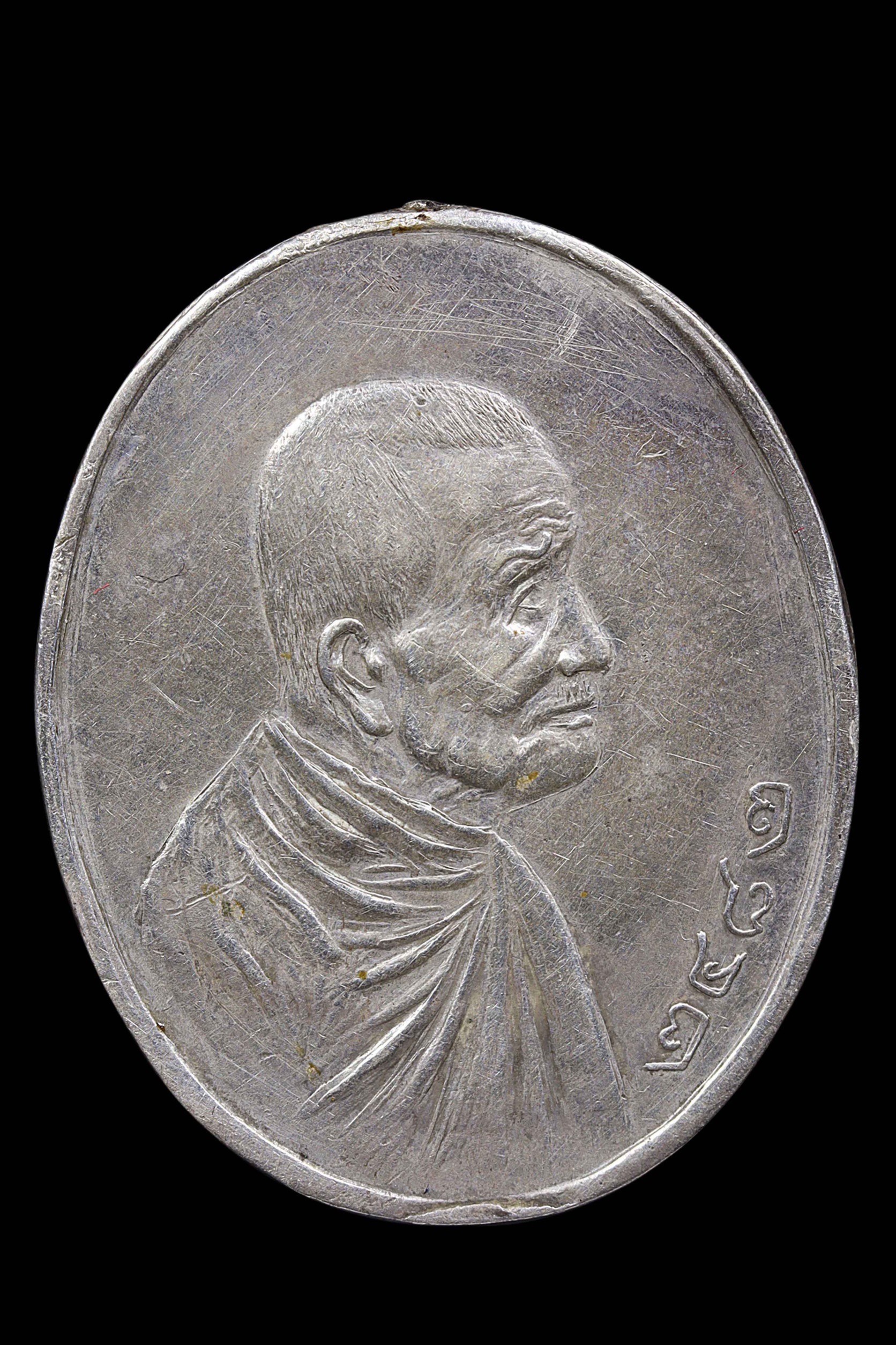 เหรียญหล่อแซยิดหลวงปู่รอด วัดบางน้ำวน รุ่นแรก ปี 2477 เนื้อโลหะผสม จังหวัดสมุทรสาคร