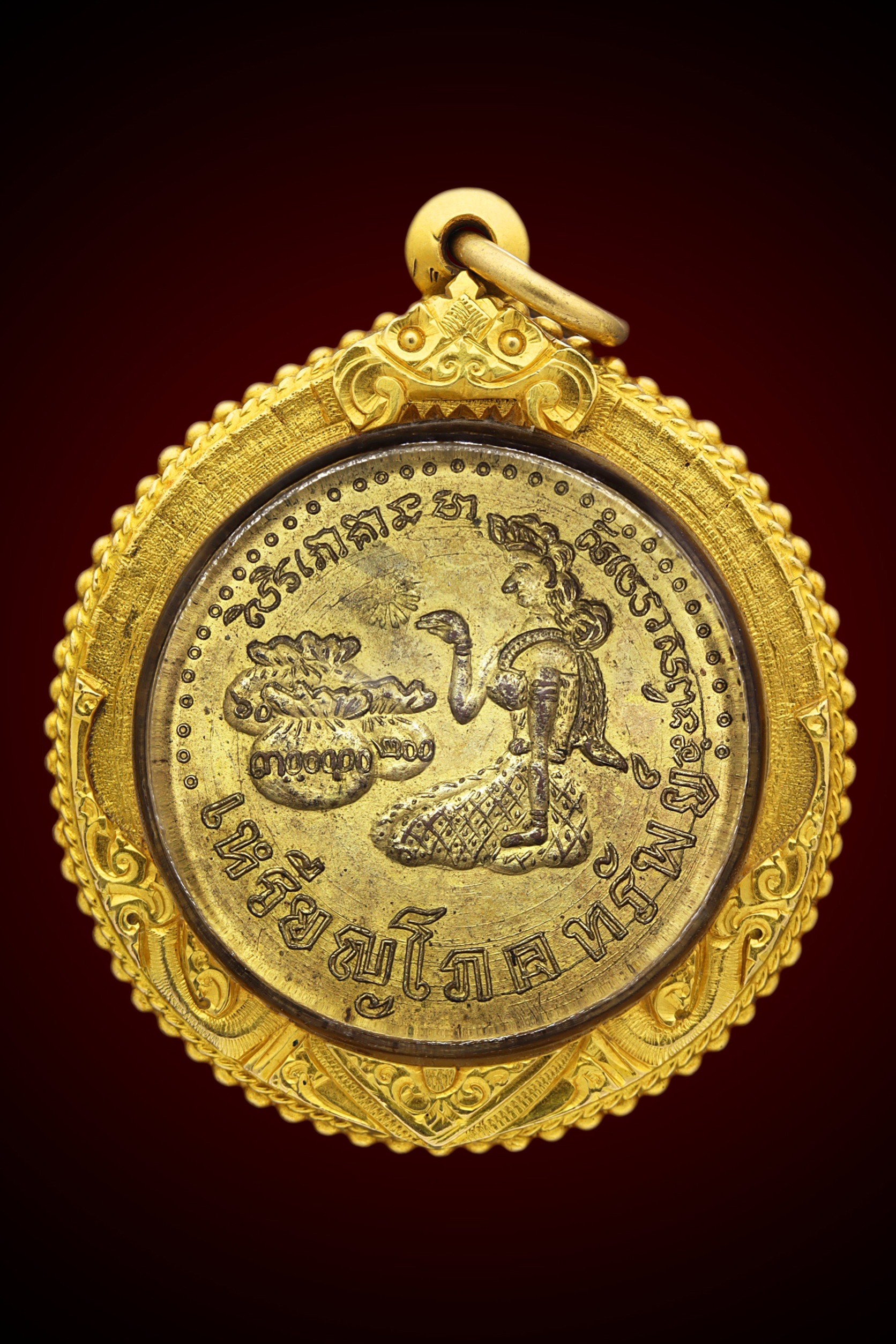 เหรียญโภคทรัพย์หลวงพ่อเส็ง วัดประจันตคาม รุ่นแรก ปี 2499 เนื้อทองแดงกะไหล่ทอง จ.ปราจีนบุรี