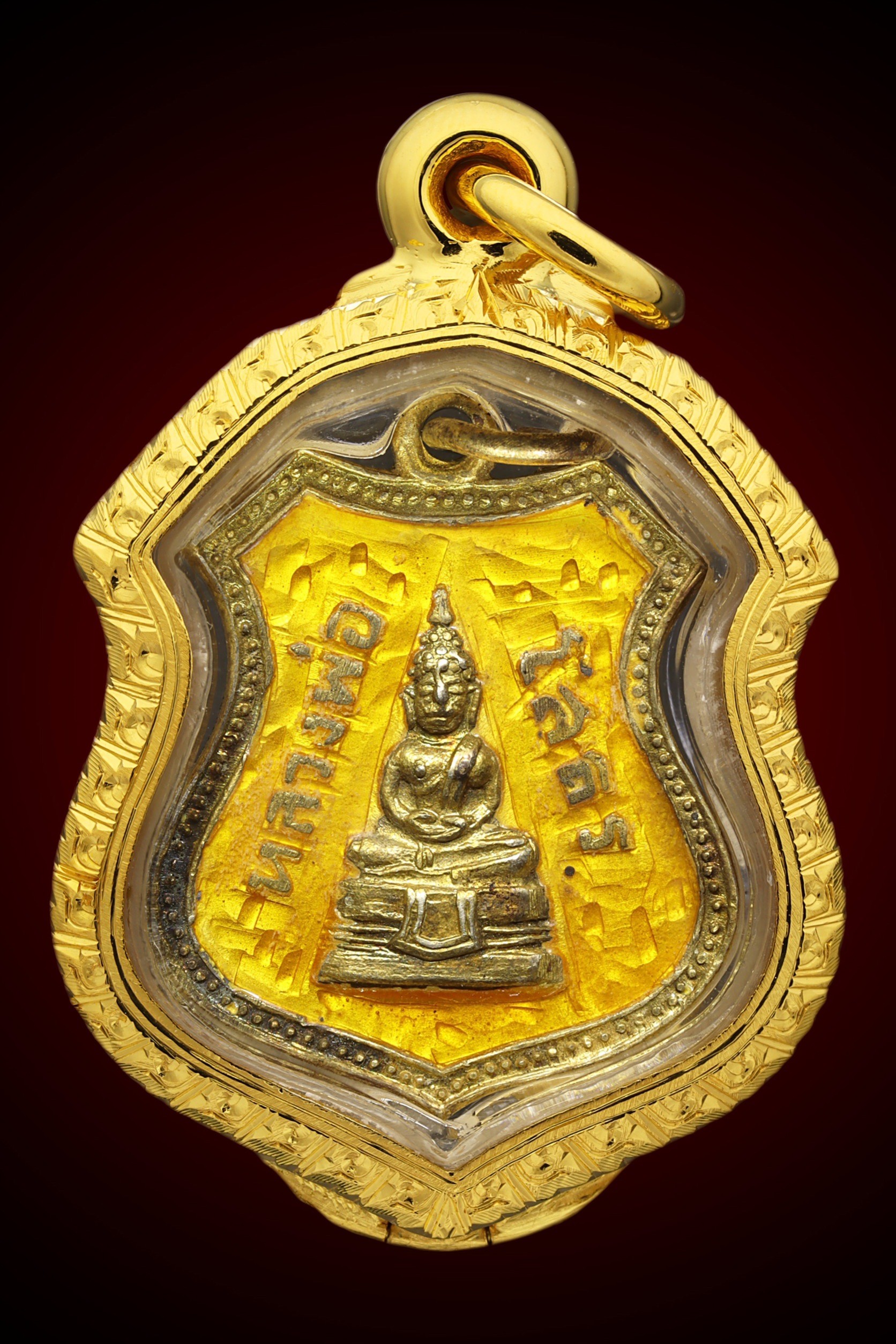 เหรียญอาร์มหลวงพ่อโสธร ปี 2509 เนื้อเงินลงยาสีเหลือง จังหวัดฉะเชิงเทรา