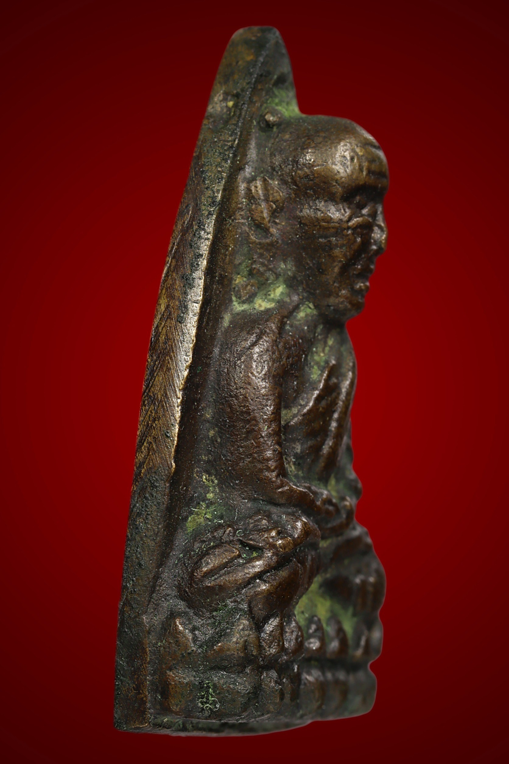 หลวงปู่ทวด หลังเตารีดพิมพ์ใหญ่ปั้มซ้ำปีกกว้าง 2 ชาย ปี 2505 เนื้อโลหะผสม จังหวัดปัตตานี