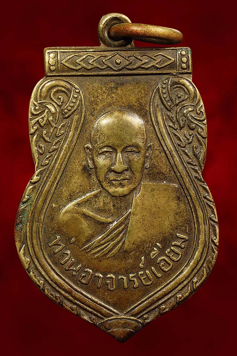 เหรียญเสมาหลวงปู่เอี่ยม วัดสะพานสูง รุ่นแรก บล็อกเอืยมนิยม ปี 2500 เนื้อฝาบาตร จังหวัดนนทบุรี