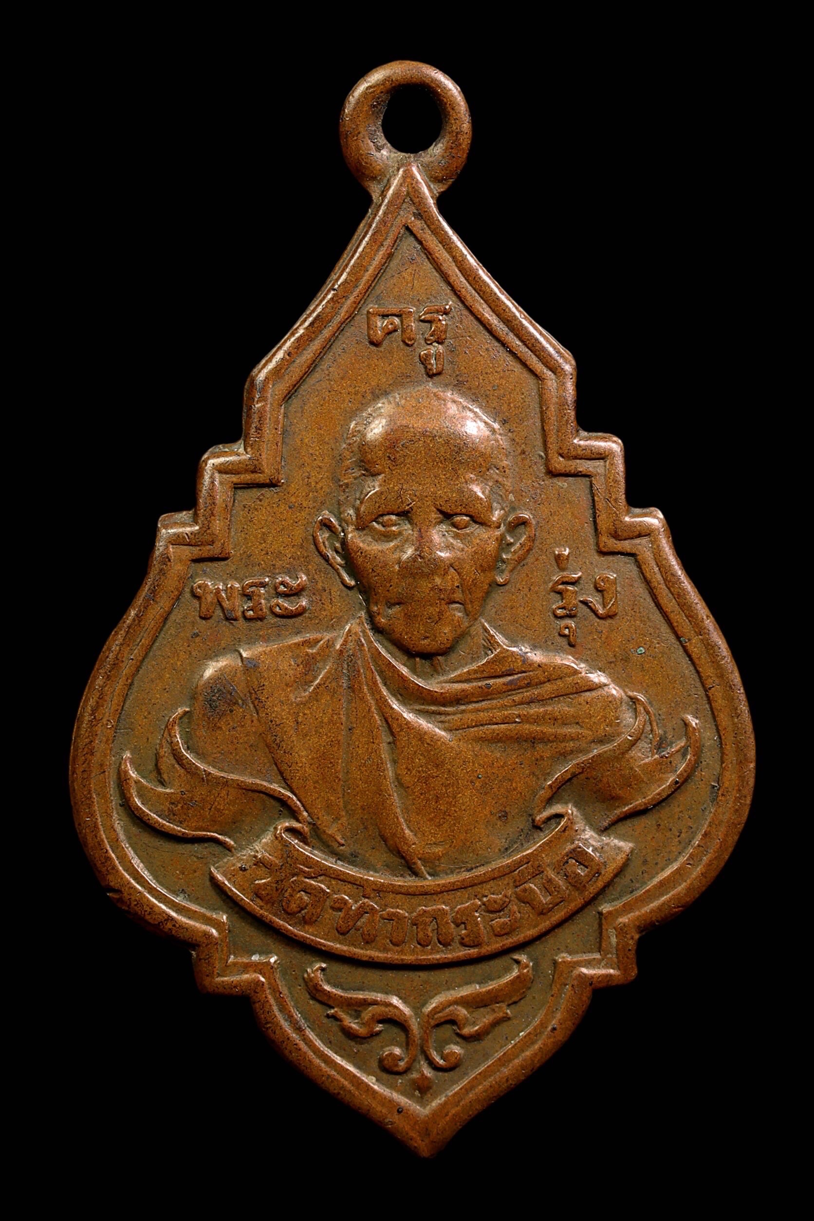 เหรียญหลวงพ่อรุ่ง วัดท่ากระบือ รุ่นแรก บล็อกหน้าแก่ยันต์หยิก ปี 2484 เนื้อทองแดง จังหวัดสมุทรสาคร
