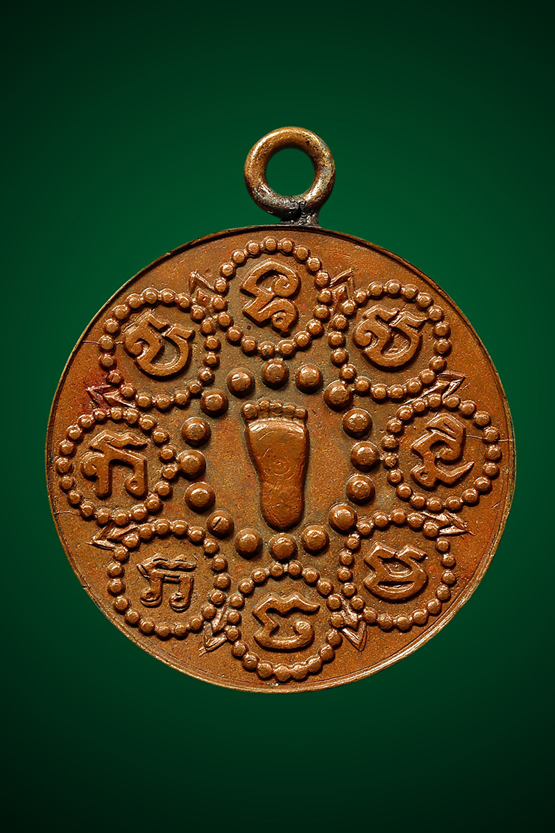 เหรียญพระพุทธบาทใหญ่ วัดเขาบางทราย รุ่นแรก ปี 2461 เนื้อทองแดง จังหวัดชลบุรี
