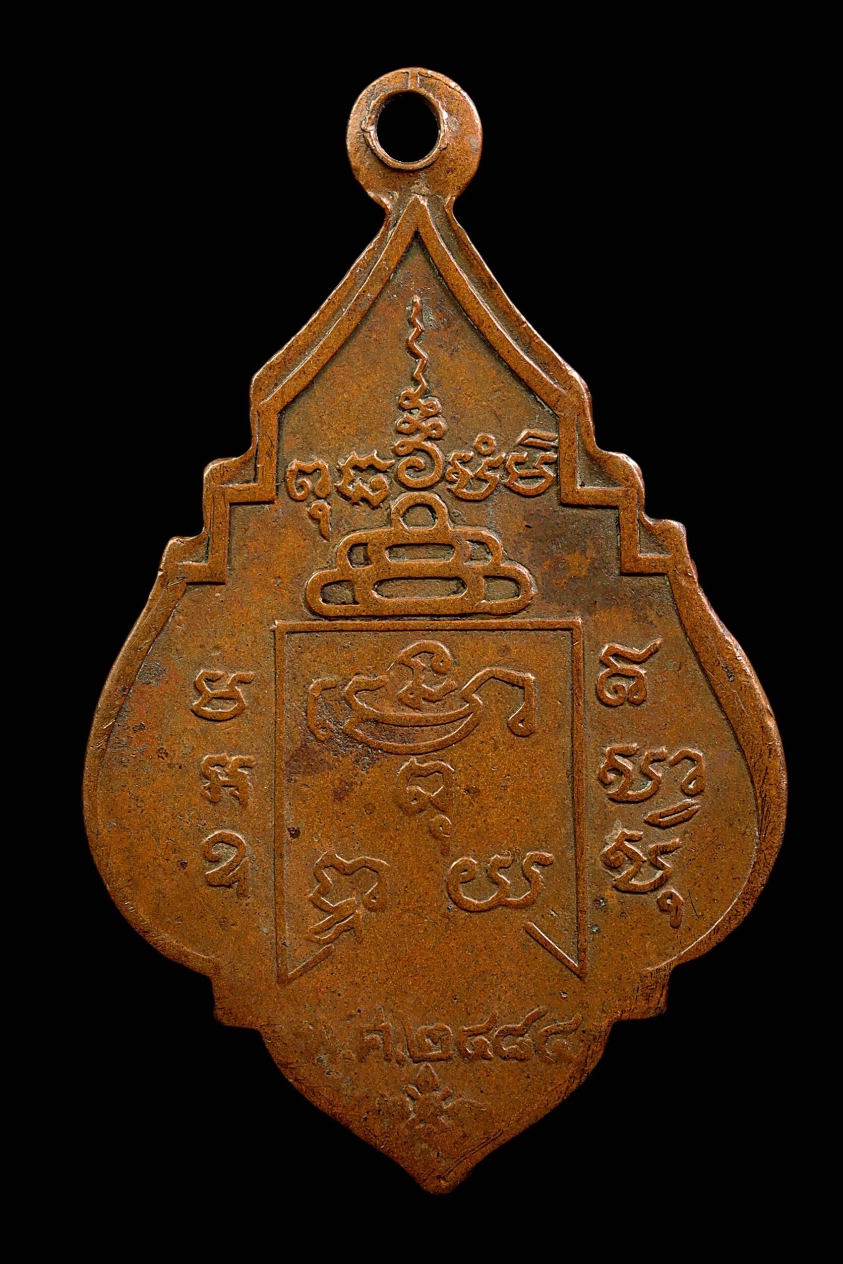 เหรียญหลวงพ่อแดง วัดเขาบันไดอิฐ รุ่นแรก ปี 2503 เนื้อทองแดงรมดำ จังหวัดเพชรบุรี
