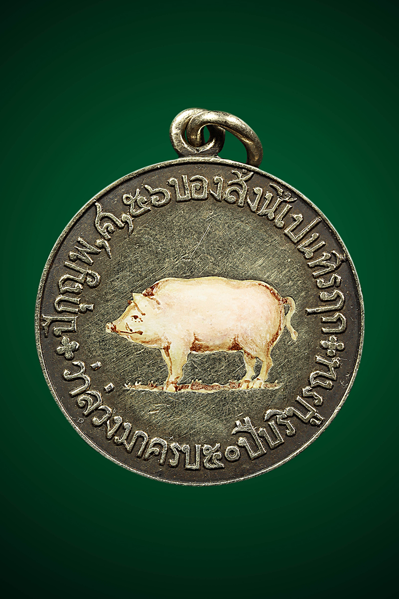 เหรียญที่ระลึกครบ 50 ปี องค์เสาวภาฯ (เหรียญหมูเดี่ยว) ปี 2456 เนื้อเงินลงยา จังหวัดกรุงเทพฯ