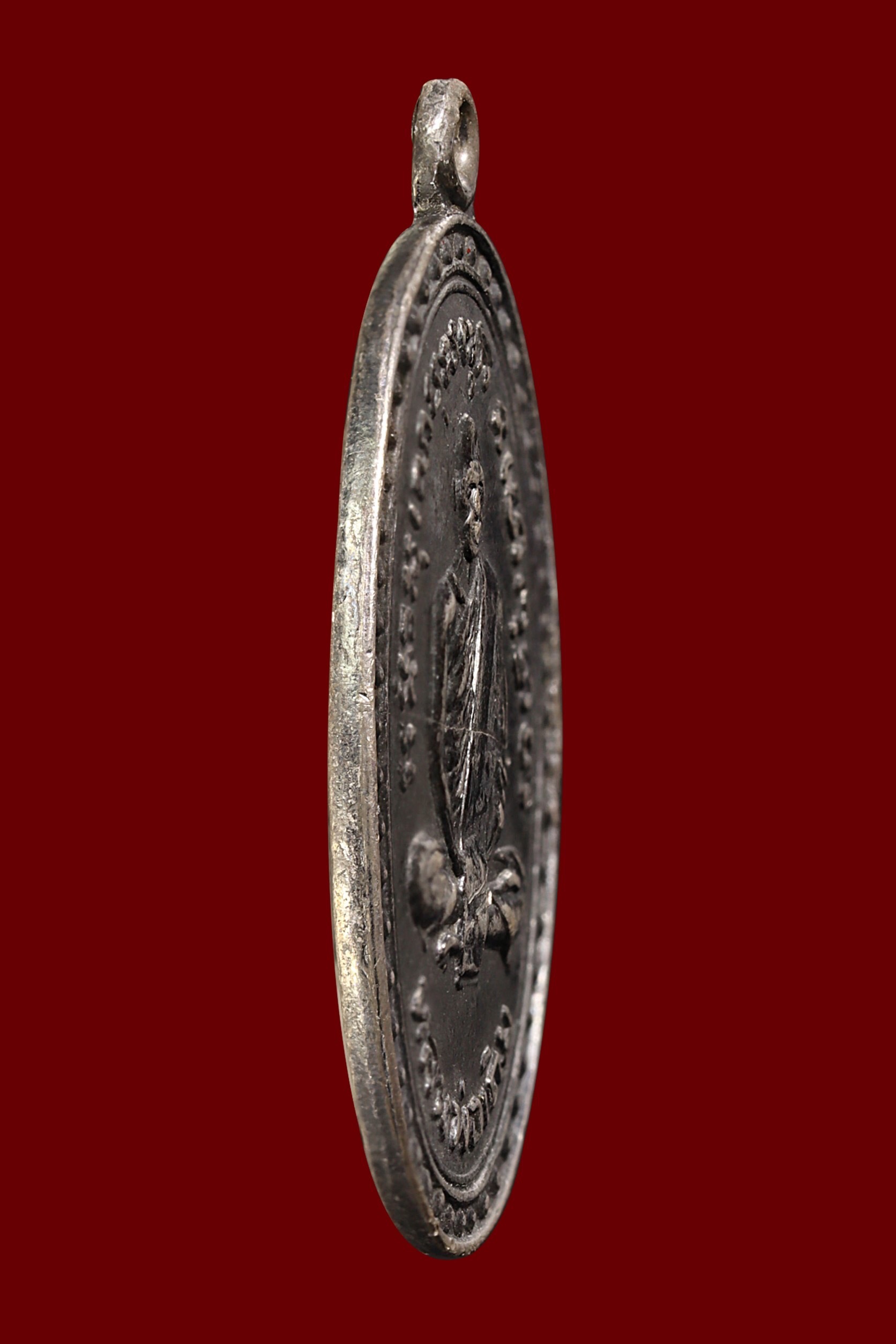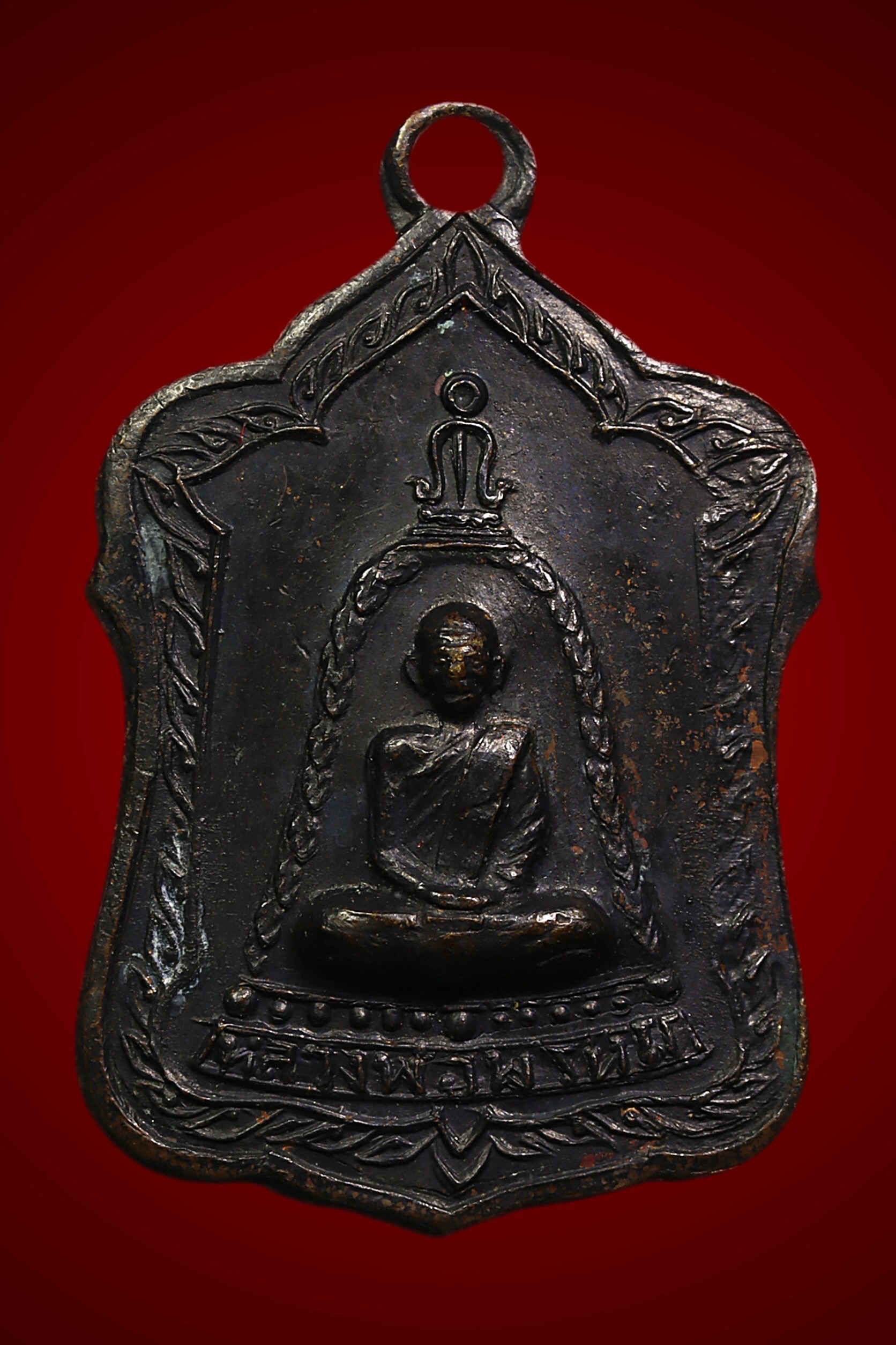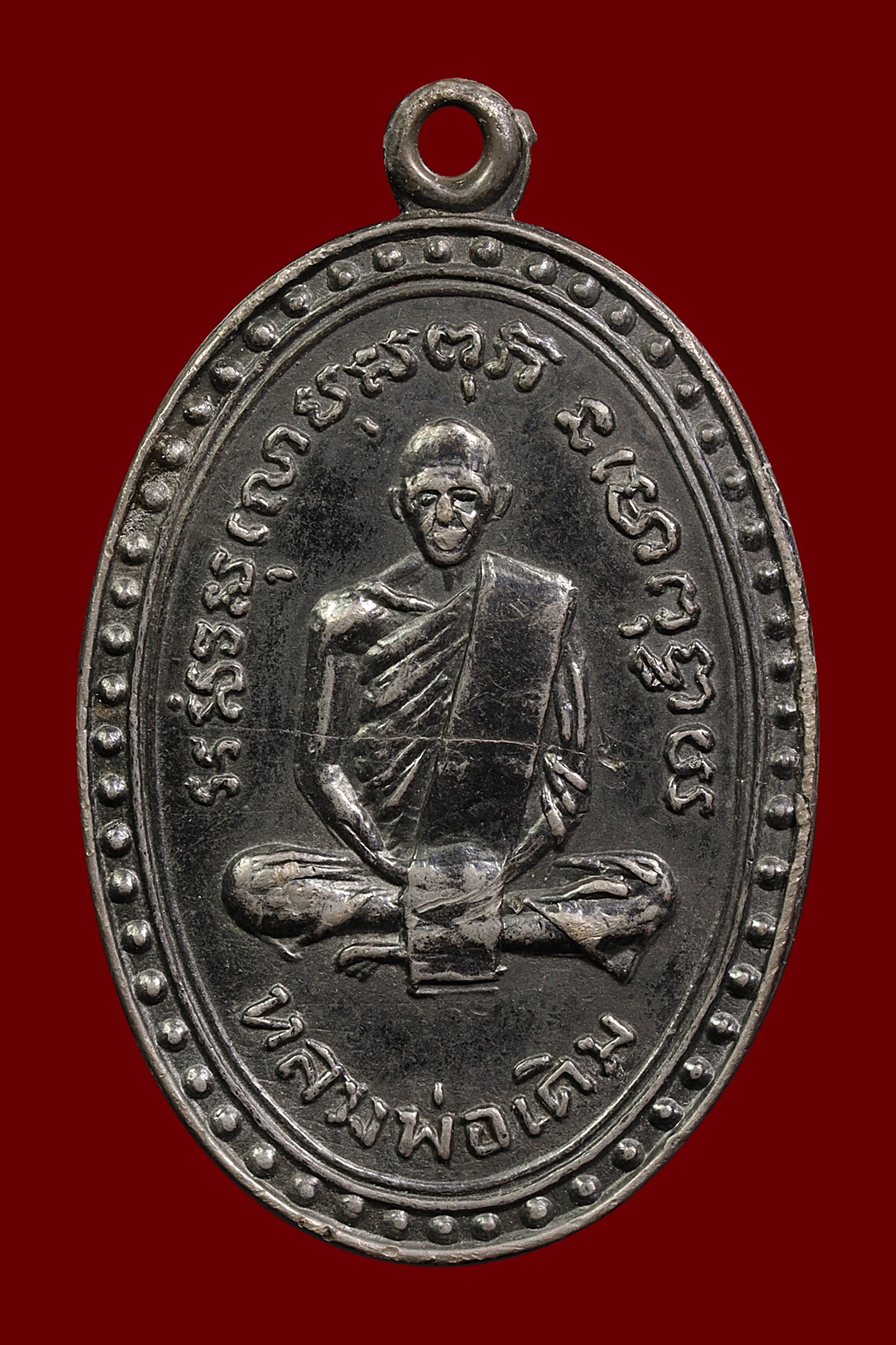 เหรียญหลวงพ่อแดง วัดเขาบันไดอิฐ รุ่นแรก ปี 2503 เนื้อทองแดงรมดำ จังหวัดเพชรบุรี