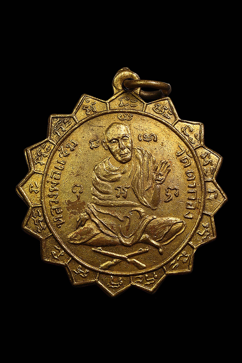 เหรียญหลวงพ่อแช่ม วัดตาก้อง รุ่นแรก บล็อกหูเดียว ปี 2484 เนื้อทองแดงกะไหล่ทอง จ.นครปฐม