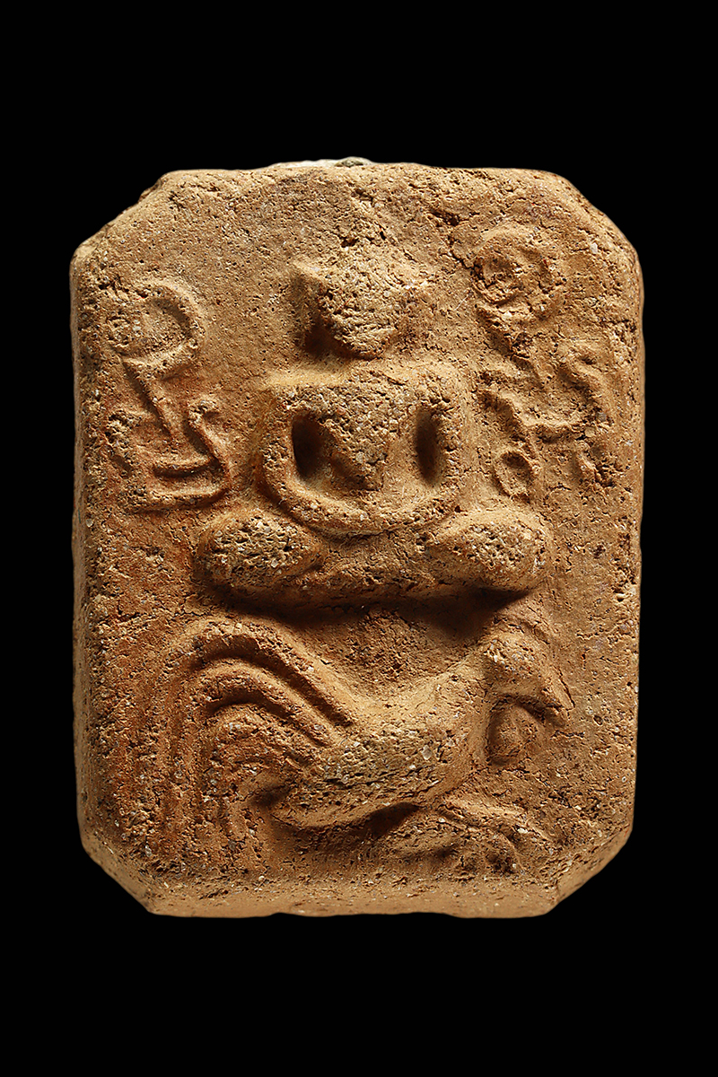 หลวงพ่อปาน วัดบางนมโค พิมพ์ทรงไก่หาง 5 เส้น เนื้อดิน จังหวัดอยุธยา