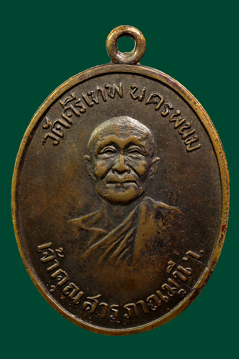 หลวงปู่จันทร์ วัดศรีเทพ รุ่นแรก ปี 2500 เนื้อทองแดงรมดำ จังหวัดนครพนม