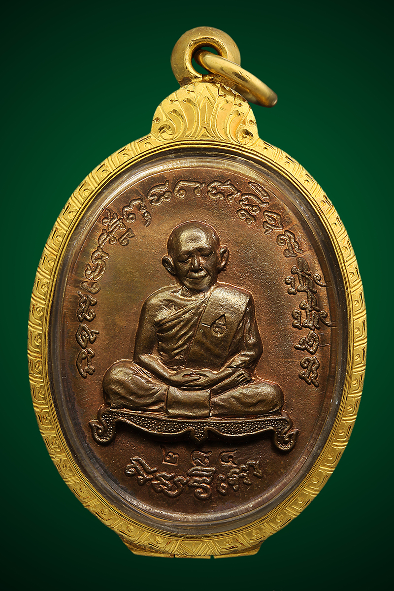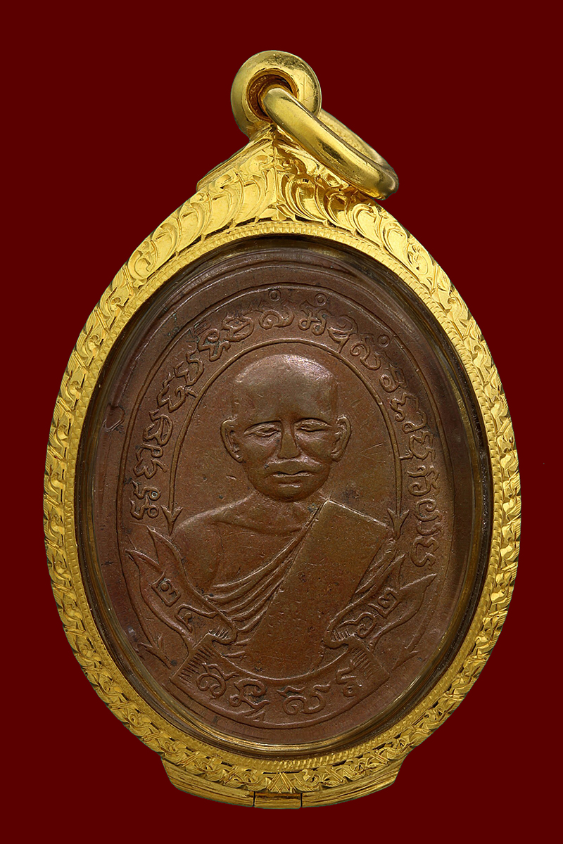 เหรียญหลวงพ่อพวง วัดหนองกระโดน รุ่นแรก ปี 2470 เนื้อทองแดงกะไหล่ทอง จังหวัดนครสวรรค์