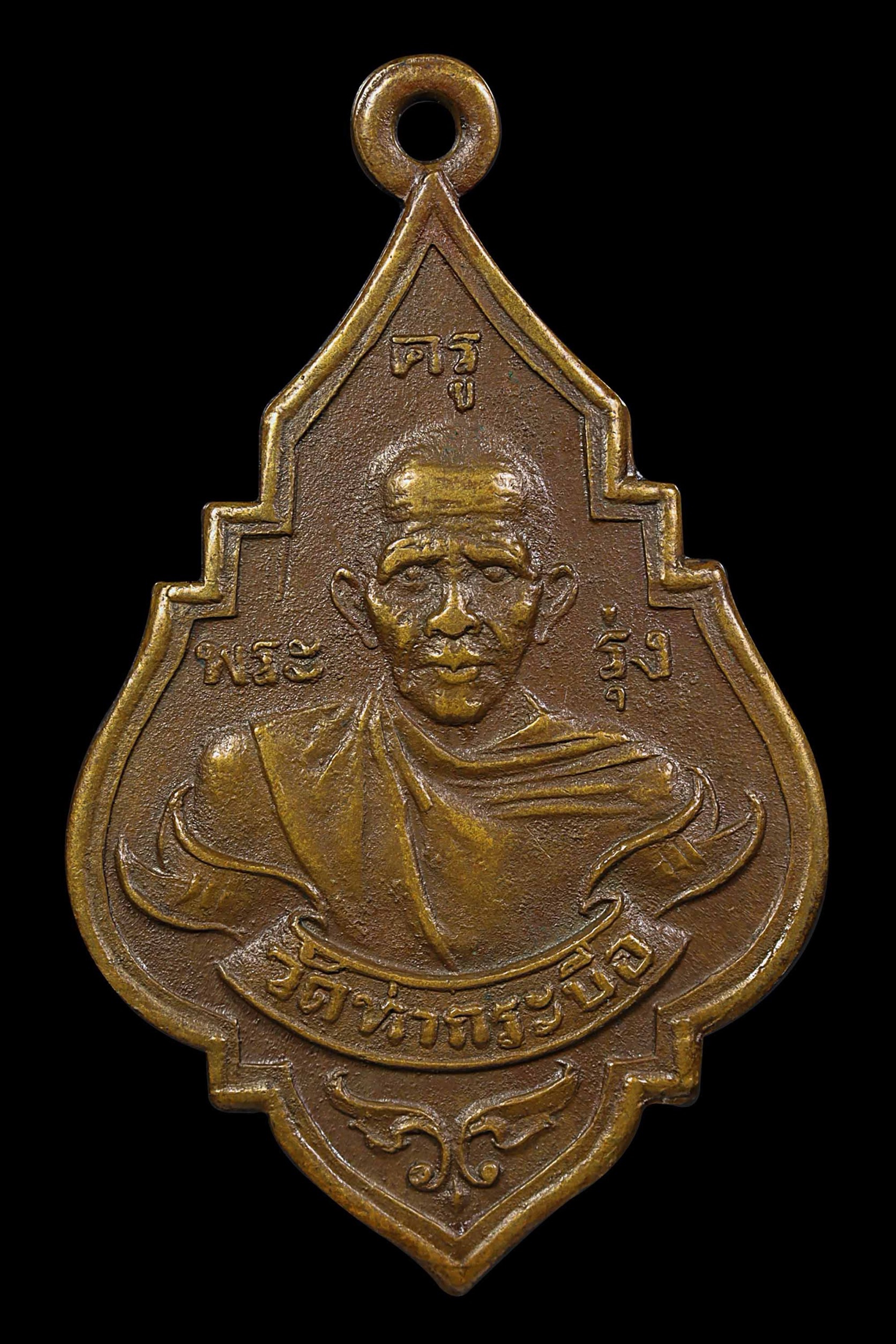 เหรียญหลวงพ่อรุ่ง วัดท่ากระบือ รุ่นแรก บล็อกแตก หน้าแก่ยันต์หยิก ปี 2484 เนื้อทองแดง จังหวัดสมุทรสาคร
