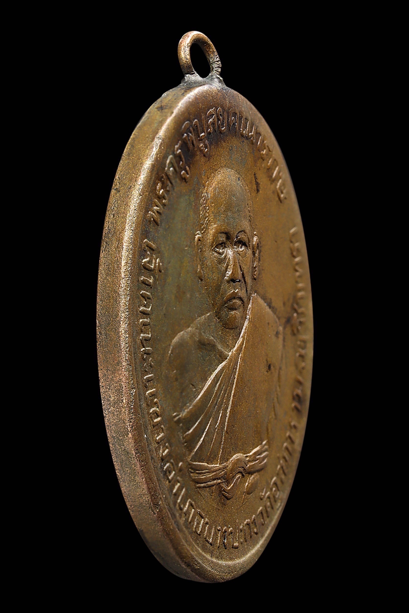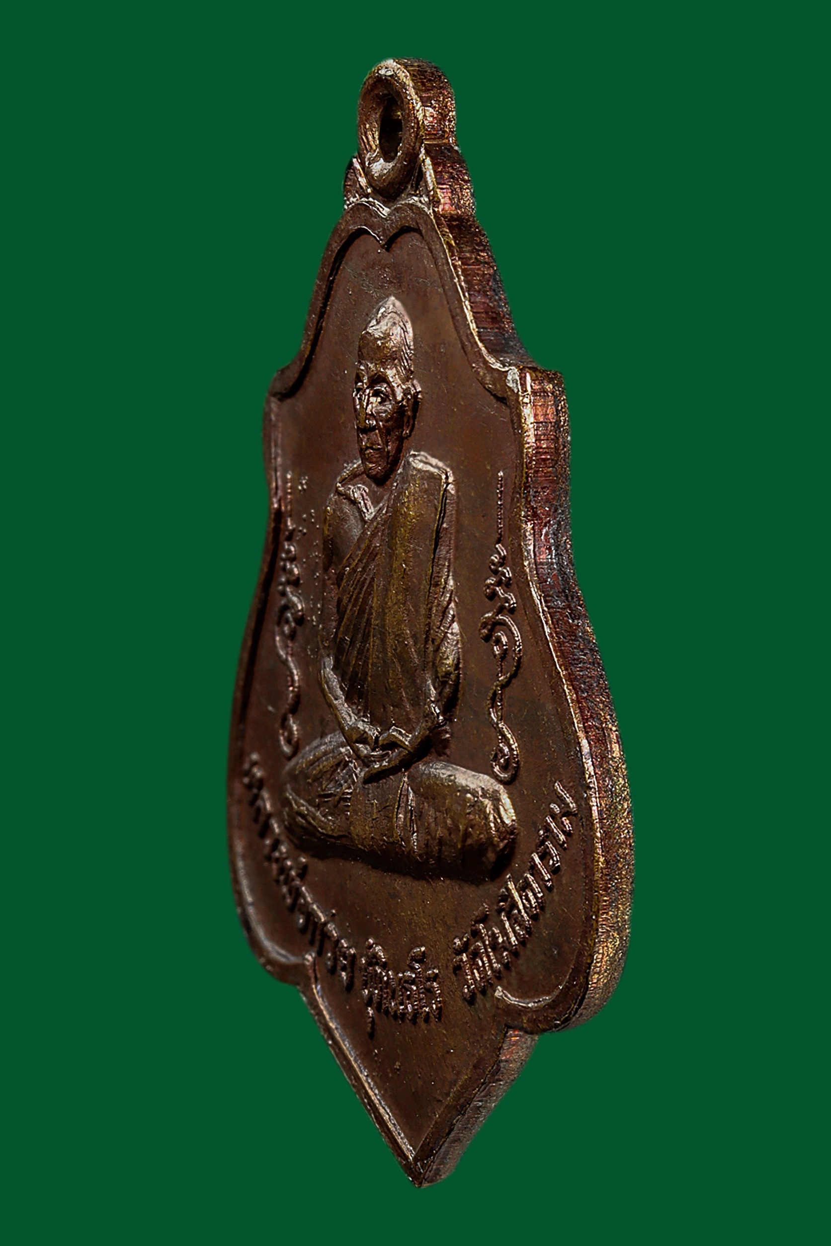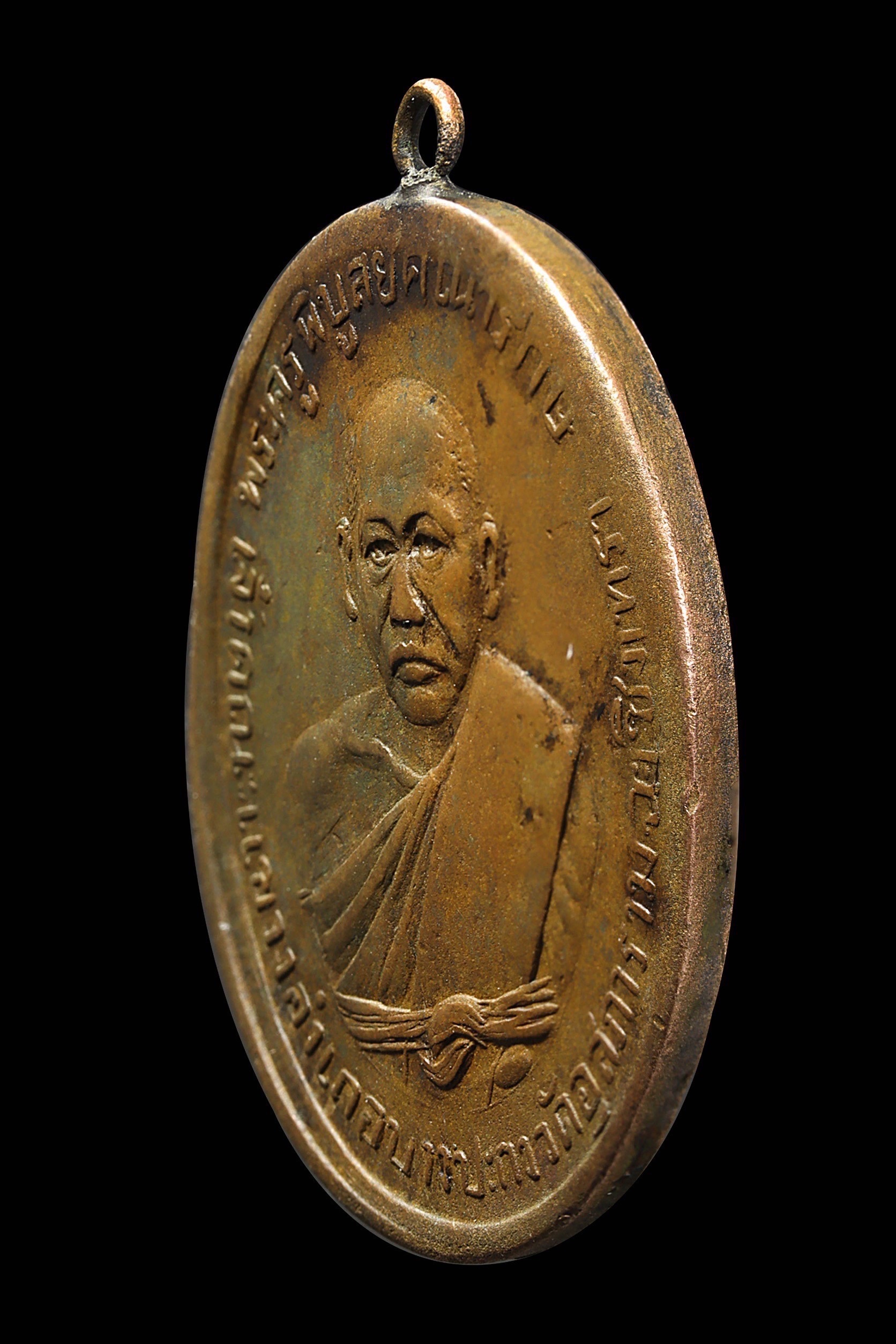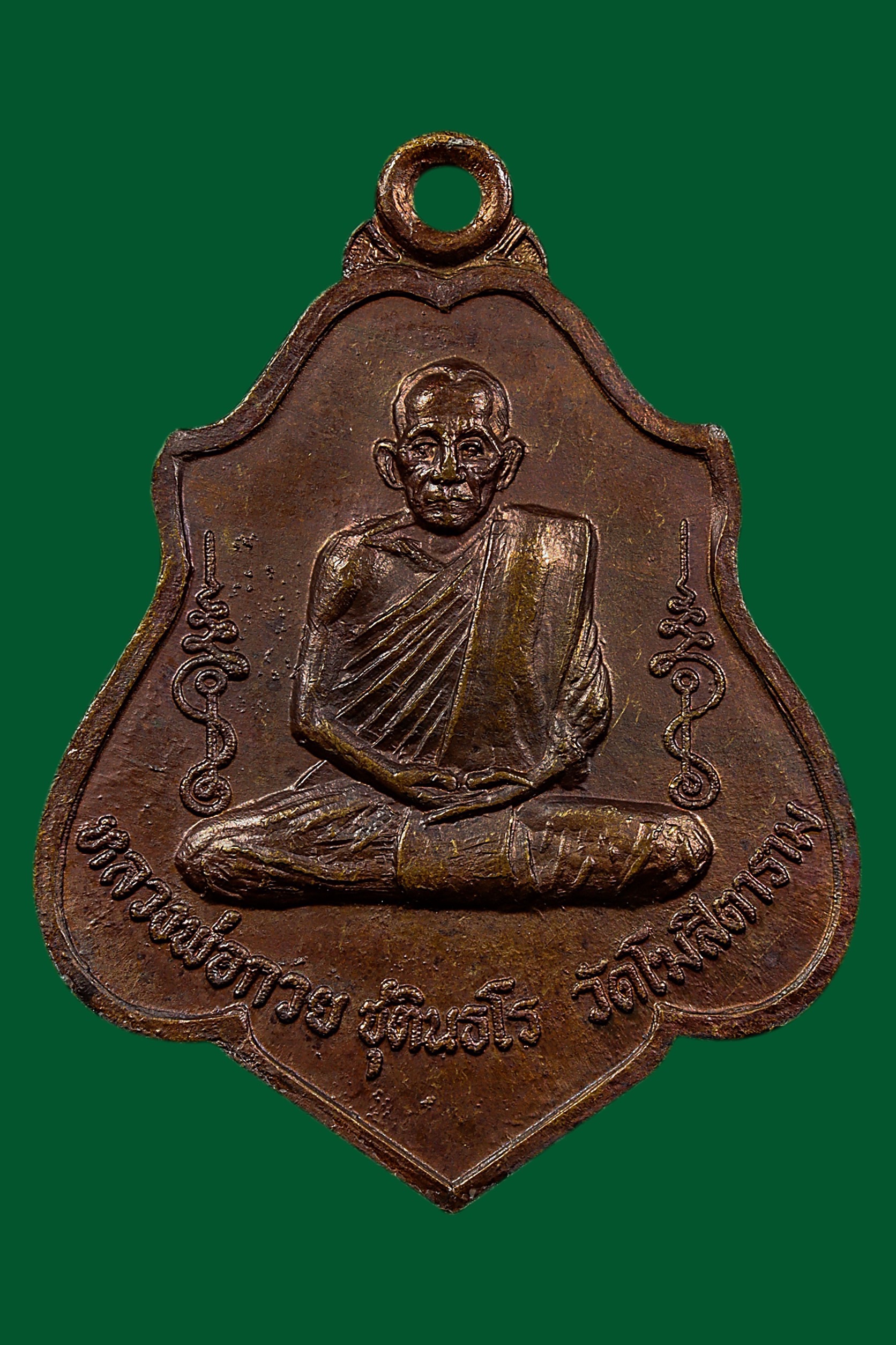 เหรียญหลวงพ่อกวย วัดโฆสิตาราม รุ่นผูกพัทธสีมา บล็อกหลังยันต์ตาราง ปี 2521 เนื้อทองแดงรมน้ำตาล จังหวัดชัยนาท
