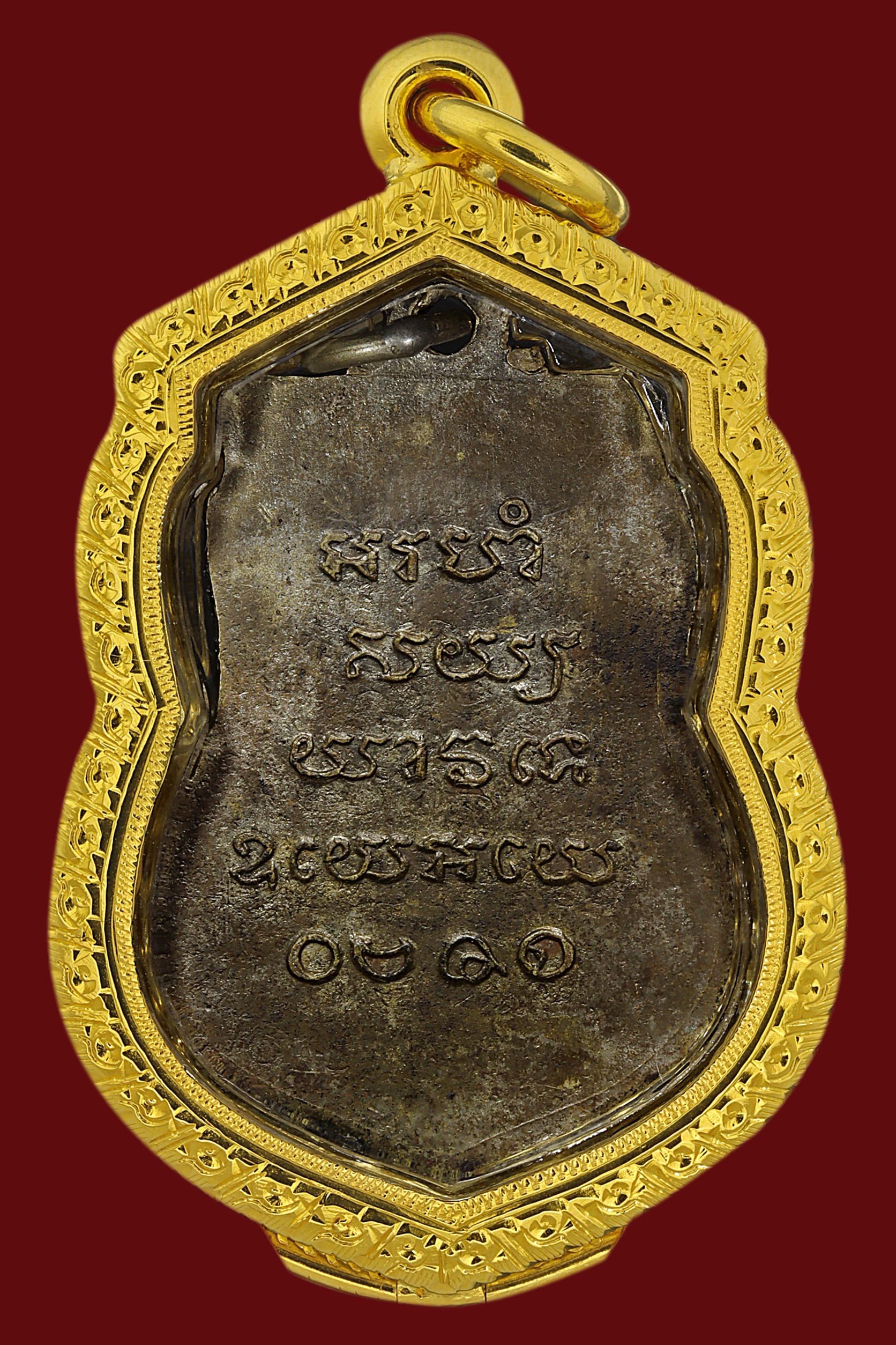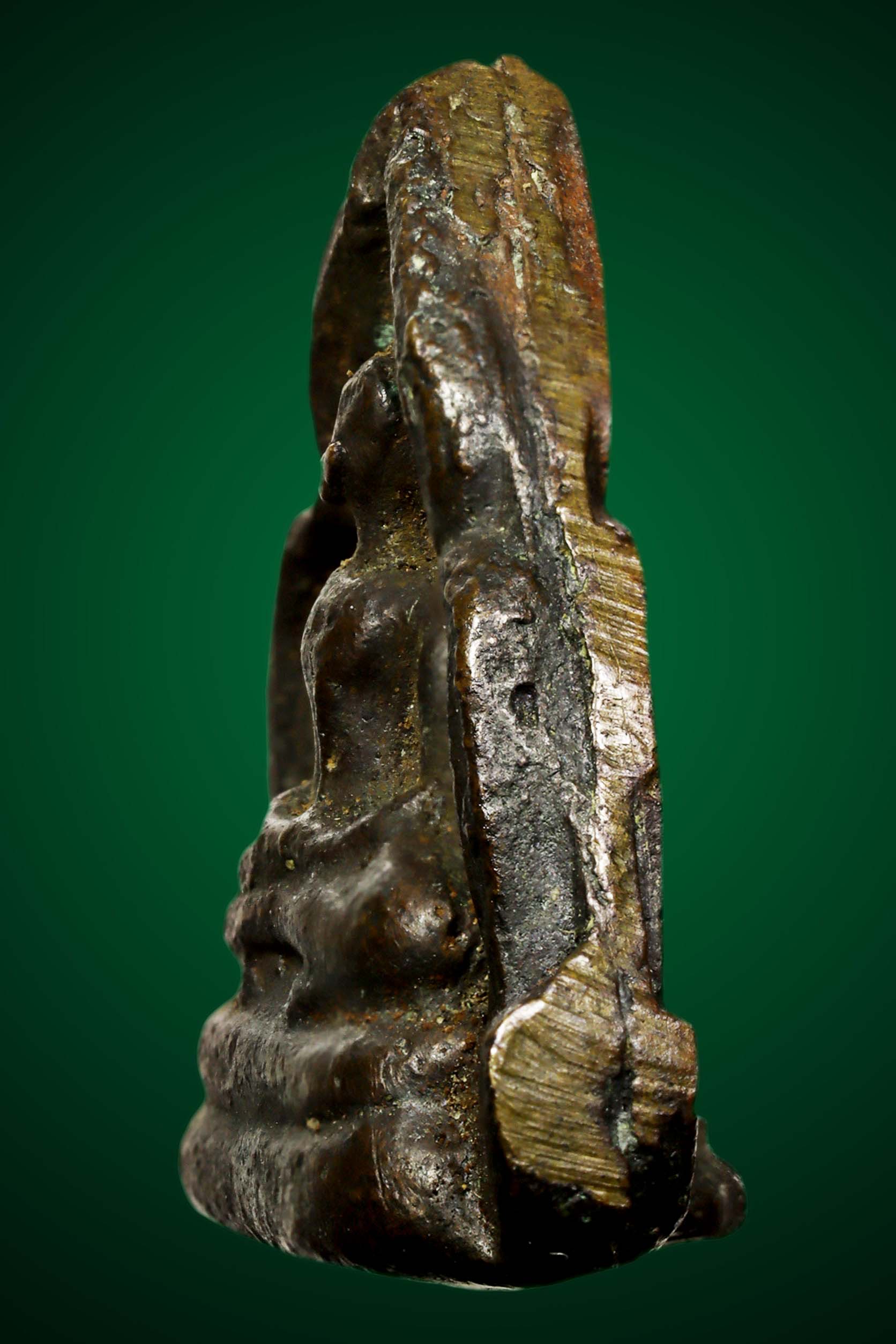 พระชัยวัฒน์หลวงปู่เอี่ยม วัดหนัง รุ่นแรก พิมพ์เบ้าแตก เนื้อโลหะผสมก้นอุดชันโรง จังหวัดกรุงเทพฯ