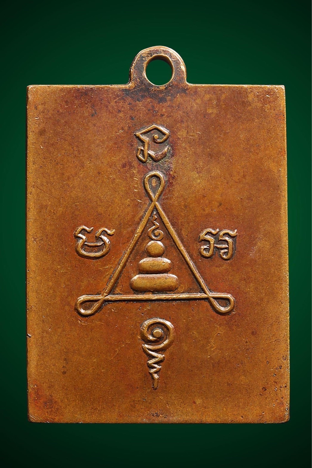 เหรียญสี่เหลี่ยมหลวงพ่อจาด วัดบางกระเบา รุ่นแรก ออกวัดบางยาง ปี 2481 เนื้อทองแดง จ.ปราจีนบุรี