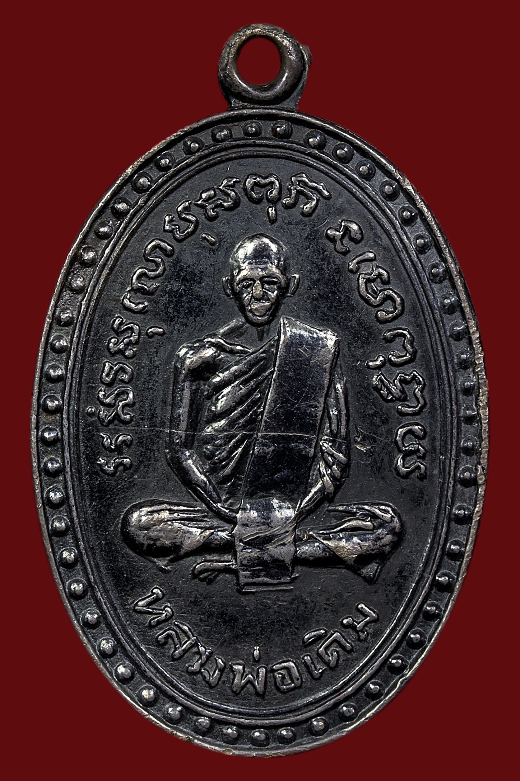 เหรียญหลวงพ่อแดง วัดเขาบันไดอิฐ รุ่นแรก ปี 2503 เนื้อทองแดงรมดำ จังหวัดเพชรบุรี